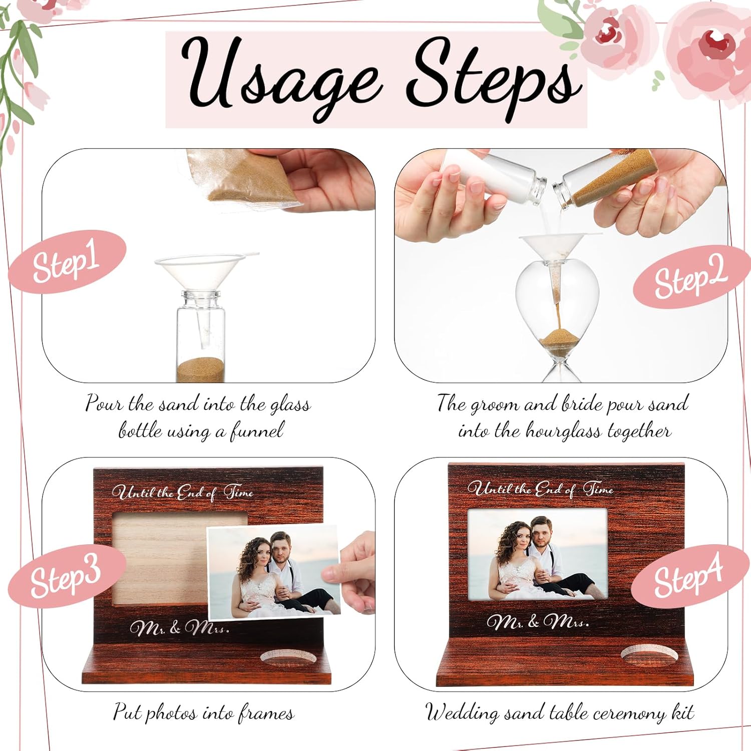 • Meaningful and Monumental Design: We creatively combine the wedding sand ceremony photo frame and the hourglass. The photo frame places photos of you and your lover, and the hourglass on the photo frame base is applied for countdown during the wedding sand table ceremony. This wedding sand ceremony set will be a meaningful item to celebrate your wedding