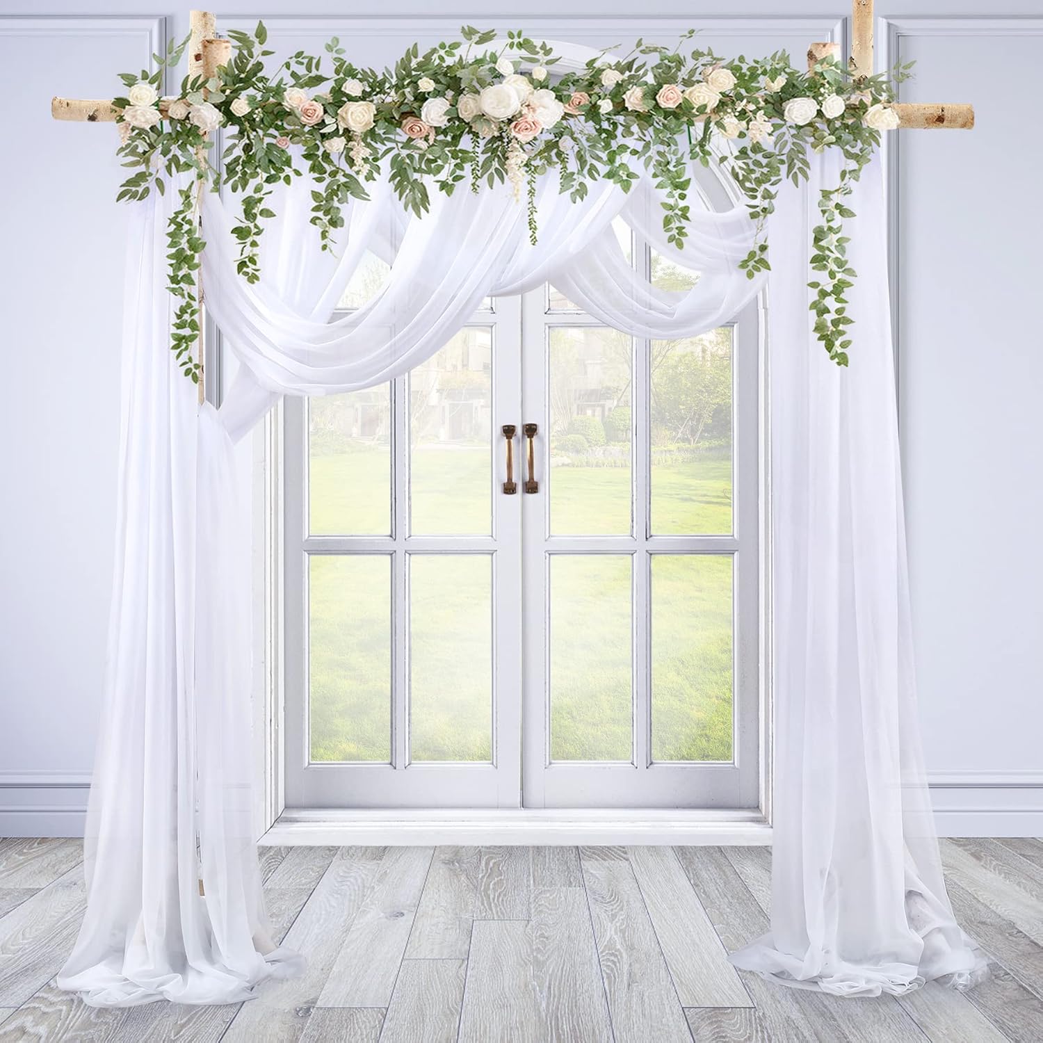 Wedding Arch Draping Fabric White Arch Drapes 6Panels Sheer Backdrop Curtain for Ceremony Wedding Arches Decor 19Ft Length x 28" Width