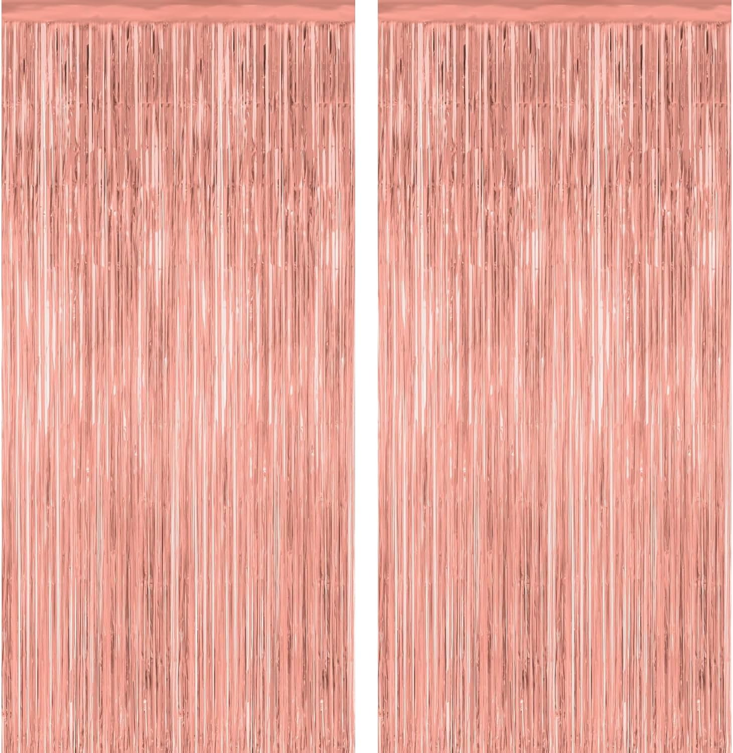 Rose Gold Streamers Party Decorations 2 Pack Rose Gold Tinsel Backdrop Supplies Foil Curtain Backdrop for Bridal Baby Shower Birthday Bachelorette Wedding Engagement Party Decorations