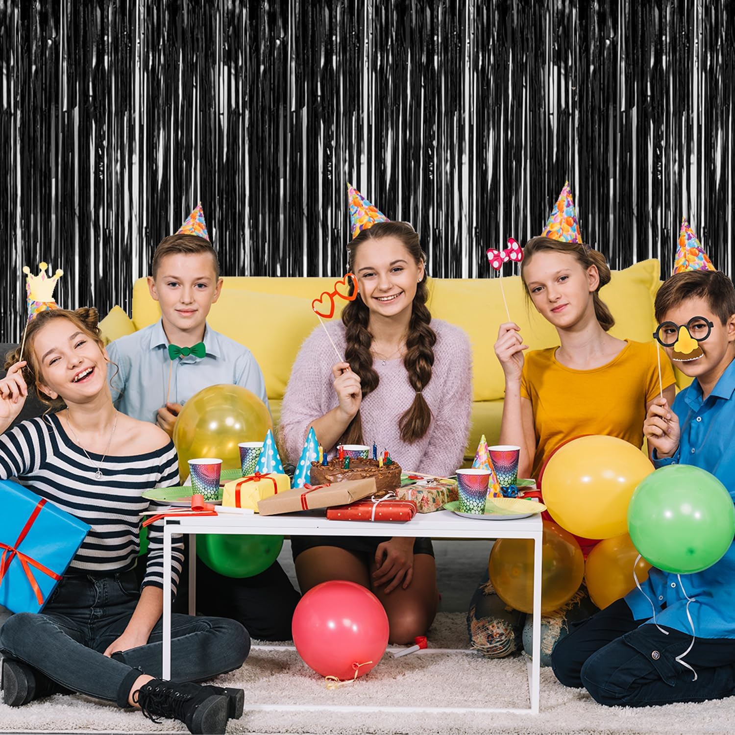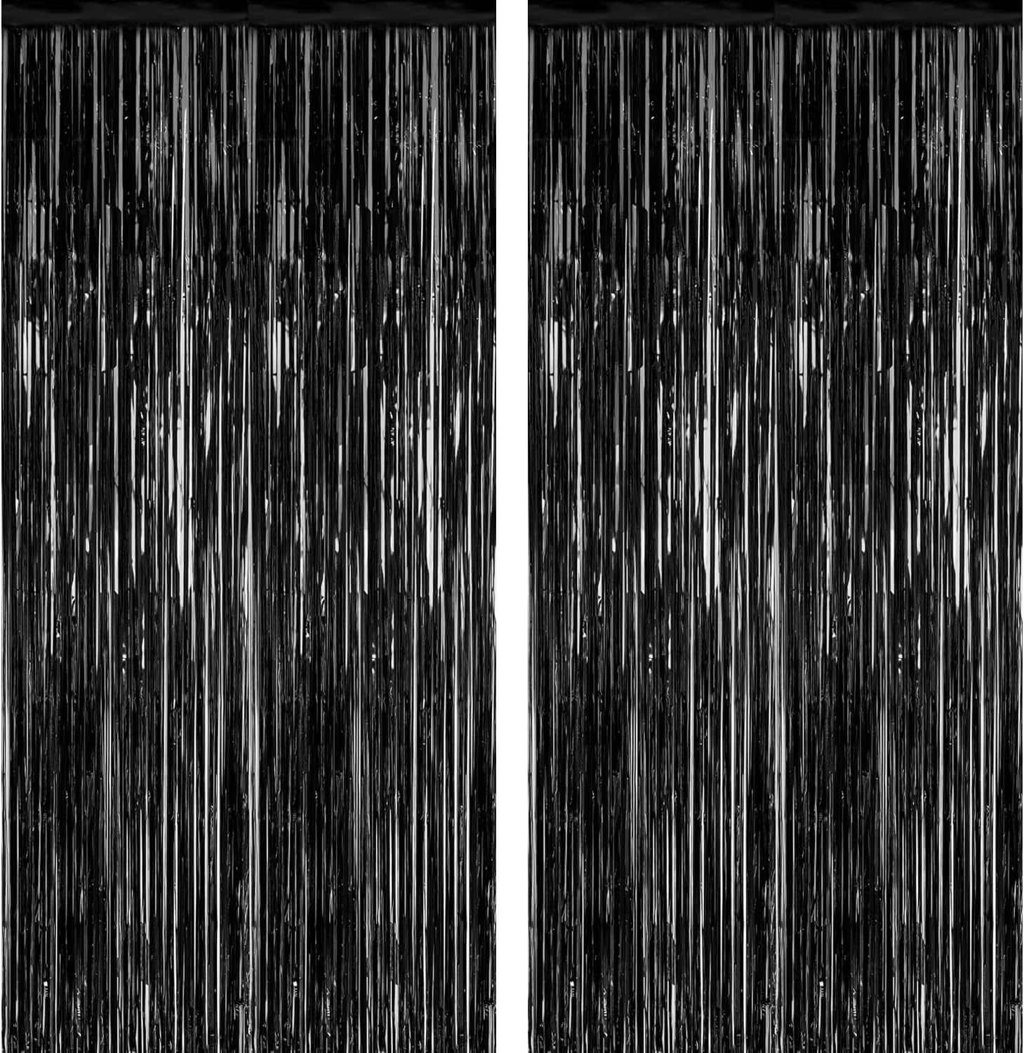 2 Pack Black Streamers Party Decorations Black Tinsel Backdrop Supplies Foil Curtain Backdrop for Baby Shower Birthday Bachelorette Wedding Engagement Holiday Celebration Halloween Party Decorations