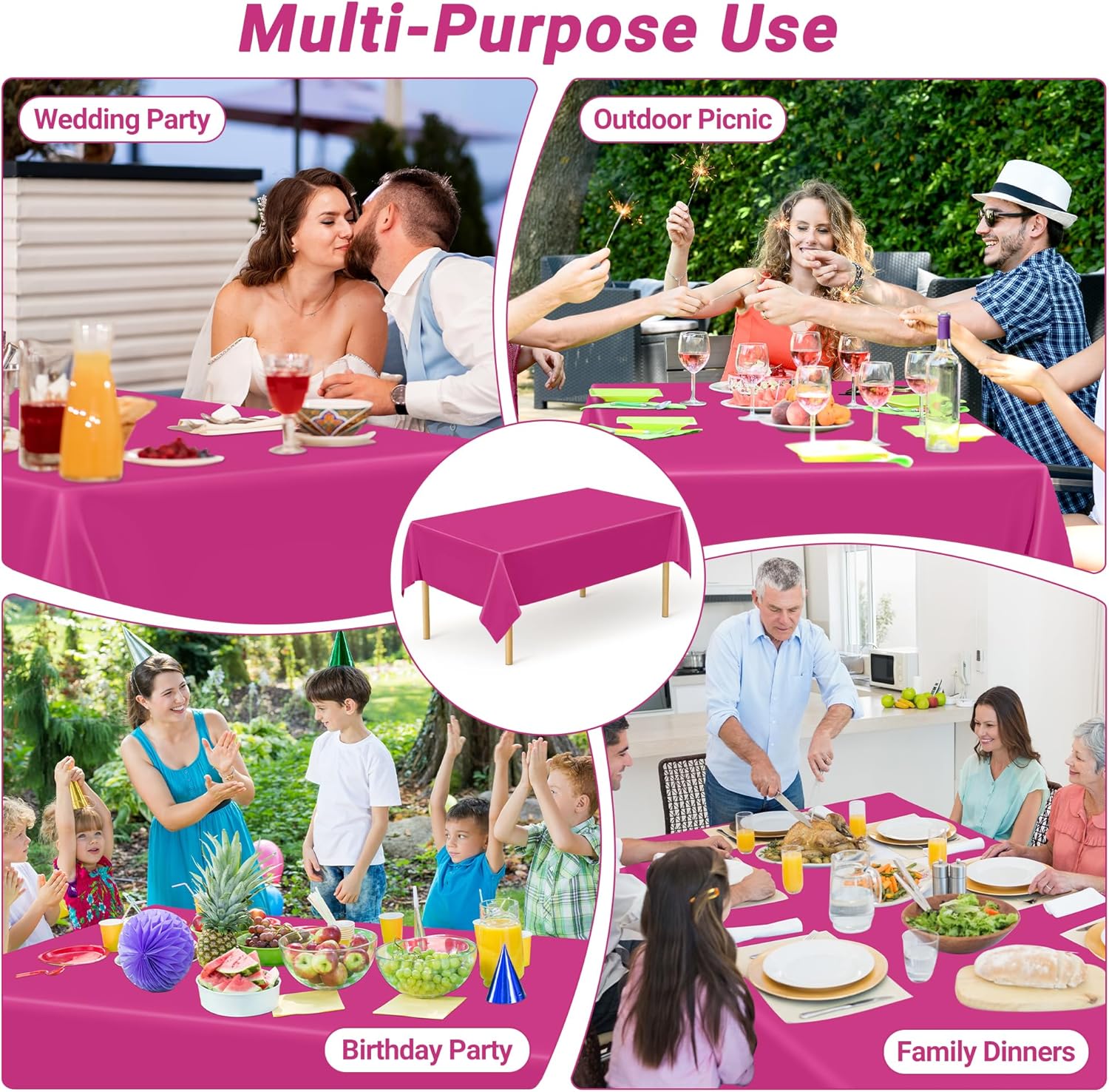 • Vibrant Color Options: Our plastic tablecloth in rose red is perfect for any occasion. The plastic table cloth creates an inviting ambiance that complements both indoor dining elegance and outdoor festive setups.