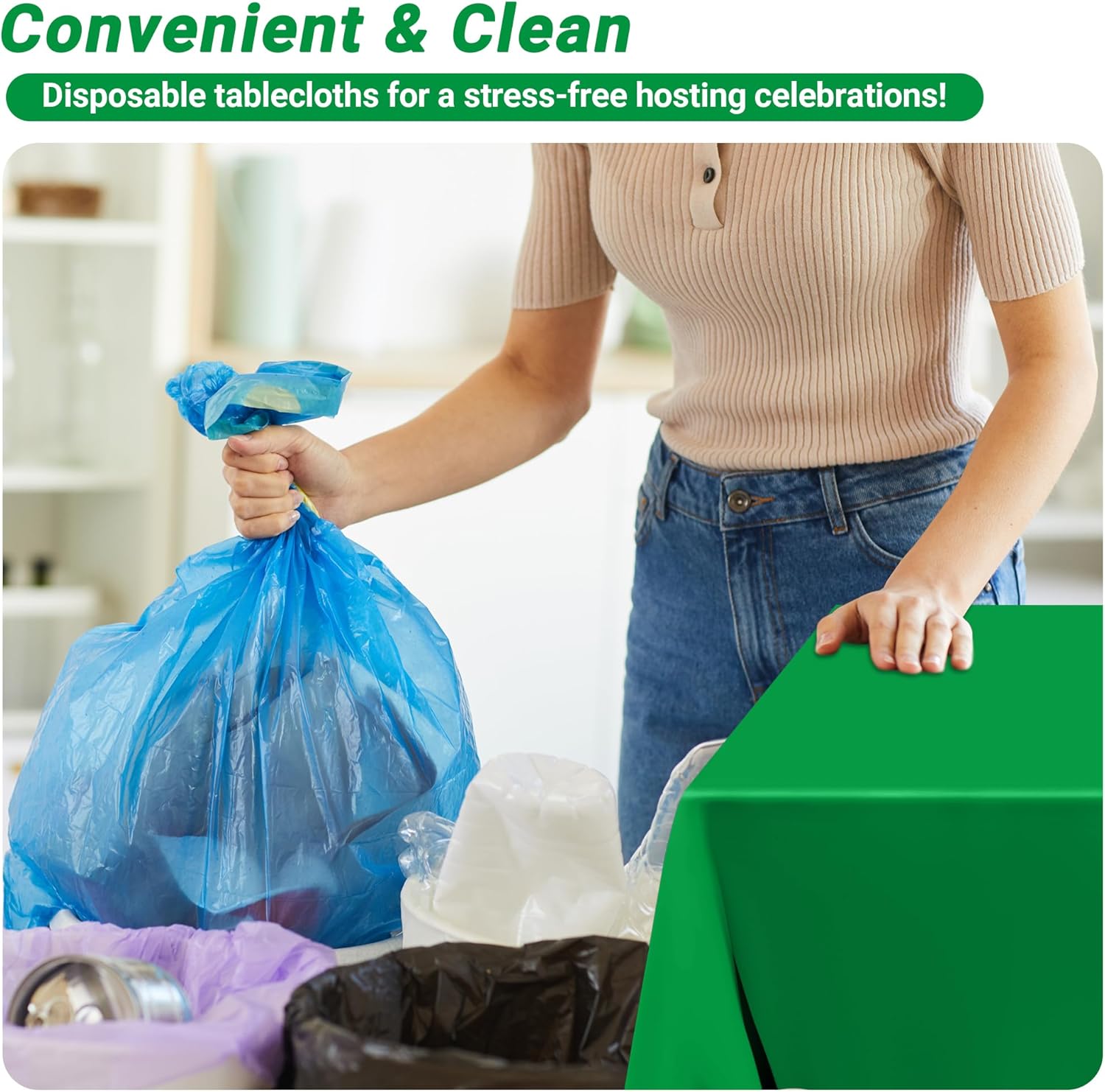 • Ample Coverage: Includes 12 pieces of 54 x 108 inches green plastic disposable tablecloths, providing full protection and a polished look for rectangular tables.