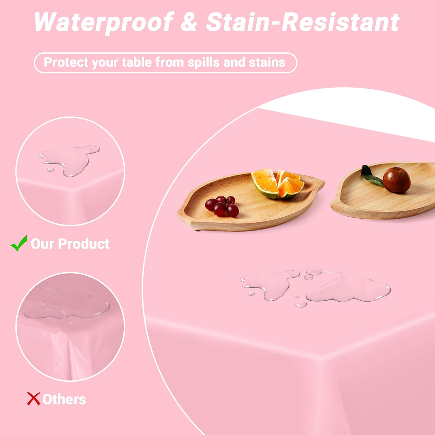 • Diverse Applications: Covers any table with minimal transparency. The pink plastic table cloth rectangle table is great for parties, weddings, thanksgiving, Christmas, Outdoor events.