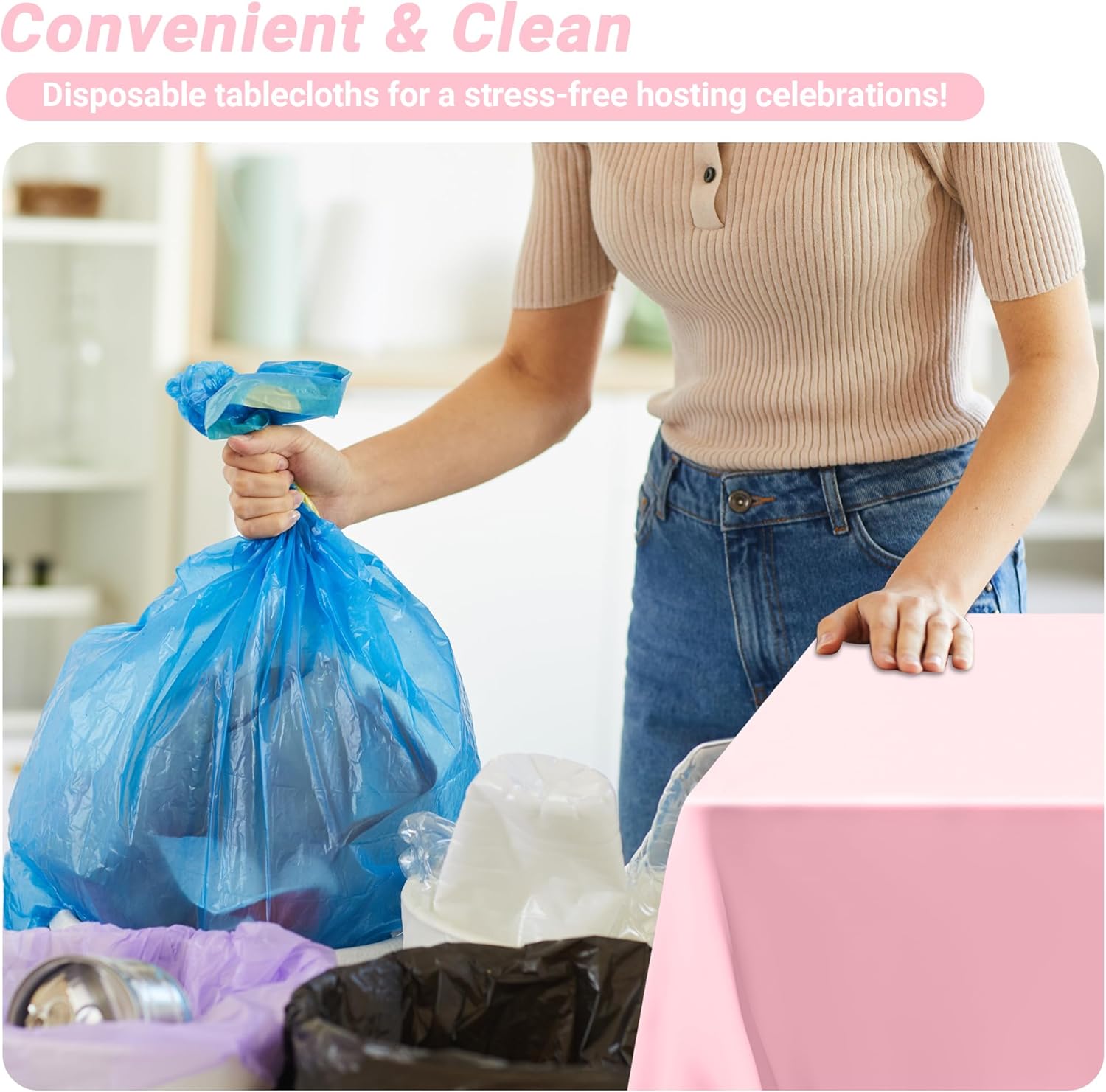 • Premium Quality: These decorative pink tablecovers are made from sturdy 0.03mm plastic PE3 filament which are a reliable choice for everyday use and are food-safe maintaining both safety and style.
