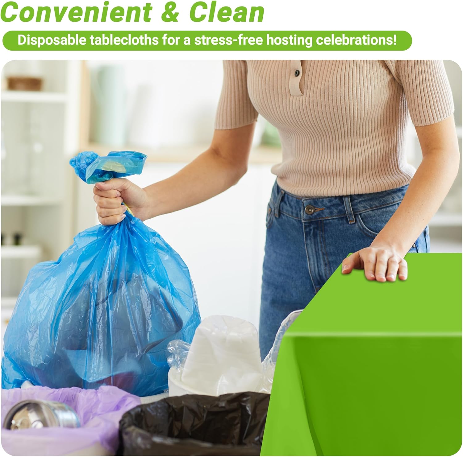 • Long-lasting and Safe: Made from 0.03mm plastic PE3 filament, these disposable light green tablecloths are sturdy, food-grade and designed for frequent use.