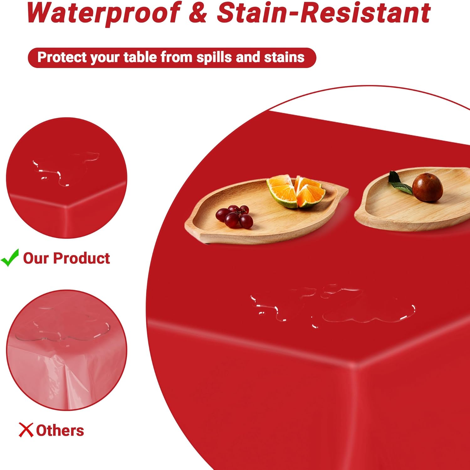 QZYL 4 PCS Picnic Table Cover, 54 x 108 in Rectangle Tablecloth, Red Table Cloth Indoor Outdoor for Baptism Decorations, Waterproof Plastic Tablecloth for Birthday, Wedding and Anniversary