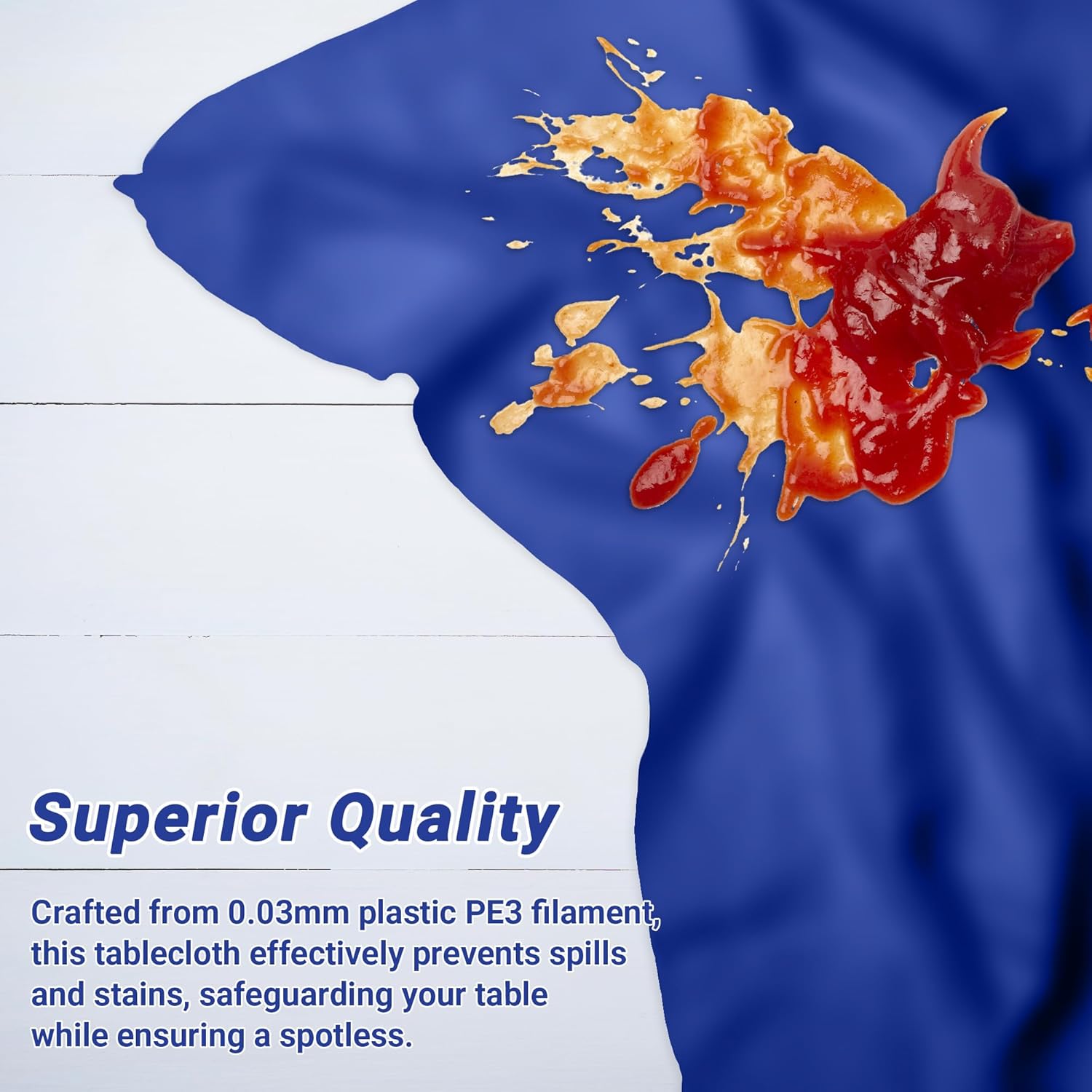 • Top-Notch Material: Made from 0.03mm plastic PE3 filament, these blue tablecloths are strong, food-safe, and built to withstand everyday use.