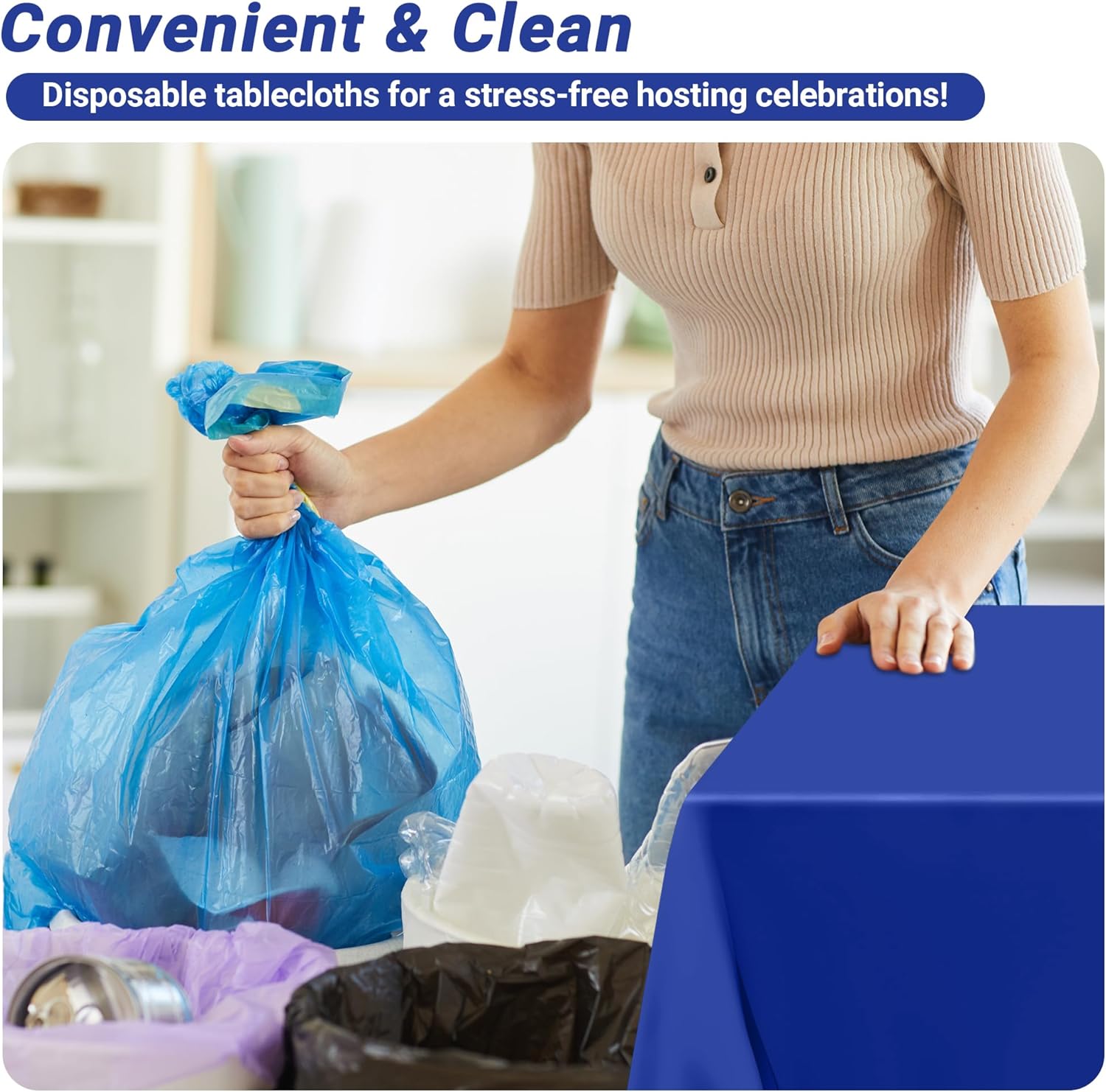 • Hassle-Free Cleanup: These disposable plastic blue tablecloths are designed to catch spills from meals, drinks or craft projects. Simply toss them after use for effortless cleanup!