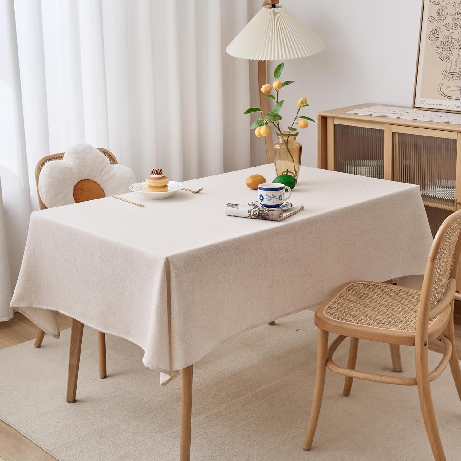 • Waterproof and Wrinkle Resistant: Our faux linen tablecloth featured water resistant, stain and spill proof, easily protect your tables and furniture from scratches, spills, stains and sun rays. You will have a wonderful dinner timing with your family.