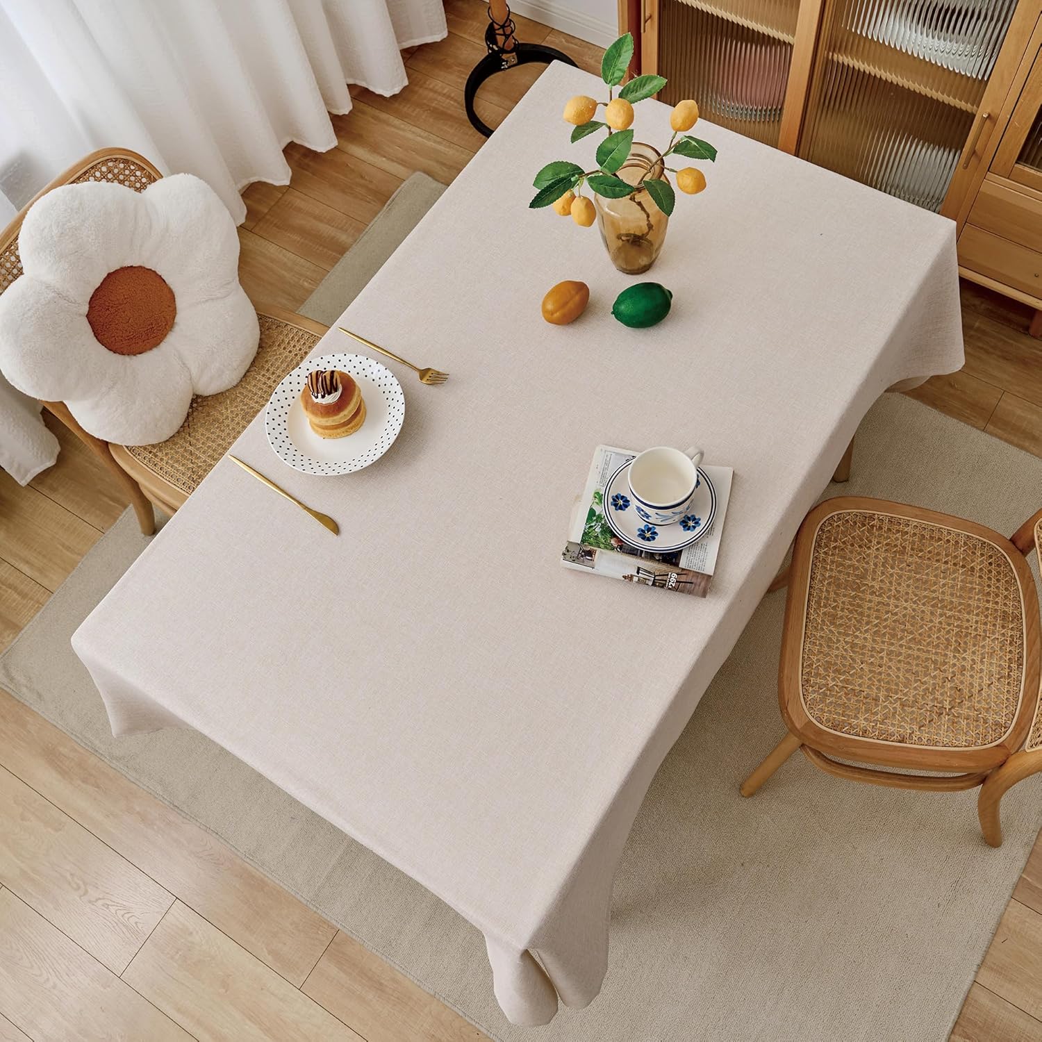 NLMUVW Oatmeal Linen Tablecloth Rectangle 6ft, Rustic Textured Table Cloth Water Resistant Farmhouse Table Cover for Kitchen Dining Party Coffee, 54x84 Inch