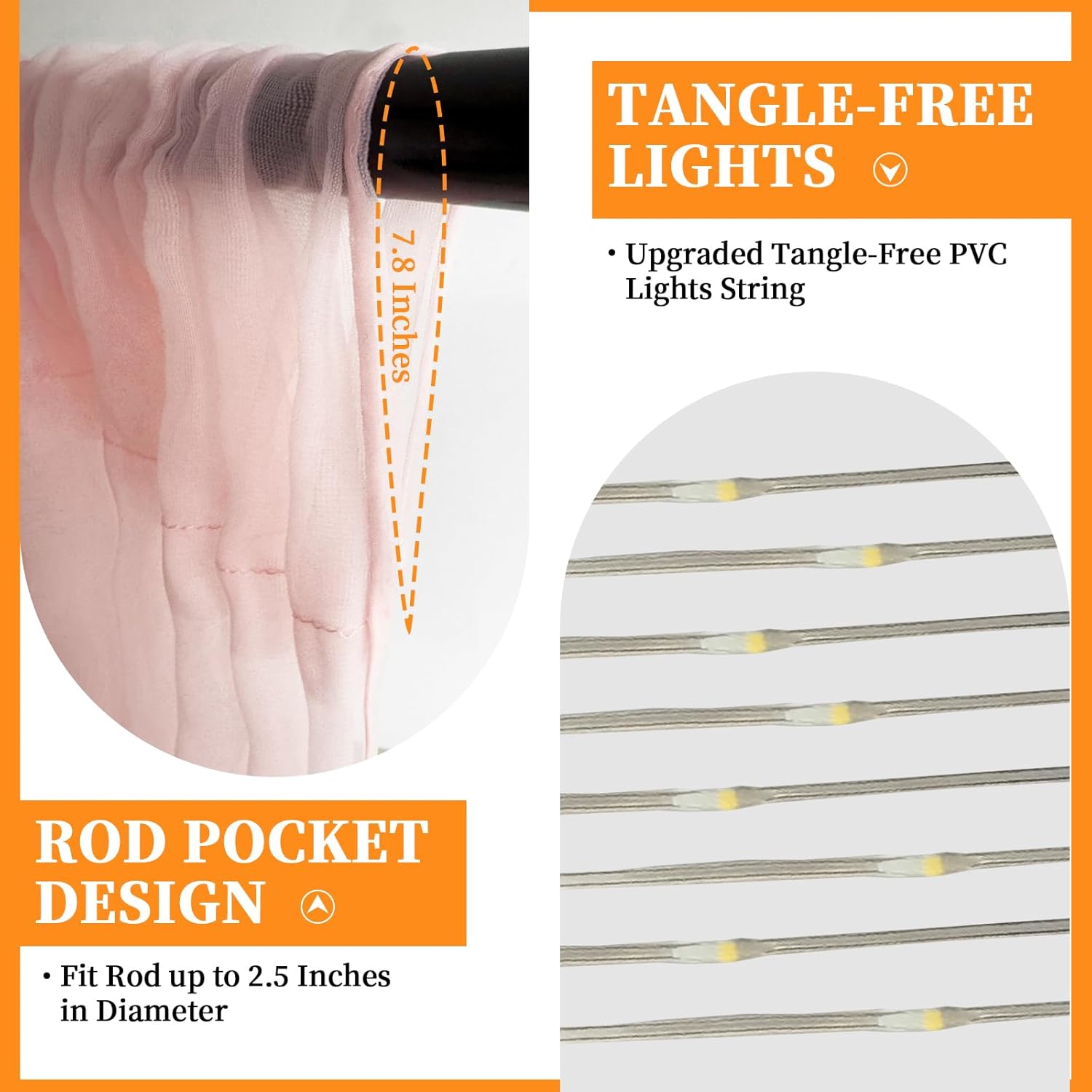 • Easy Setup & Reusable Decor: Designed for convenience, the tulle curtain features a 2.5-inch rod pocket for easy hanging on pipes or stands. Includes 12 Transparent clips make the lights simple to hang and secure to the backdrop, adding a warm, inviting glow. Reusable and easy to store, this set is perfect for multiple events