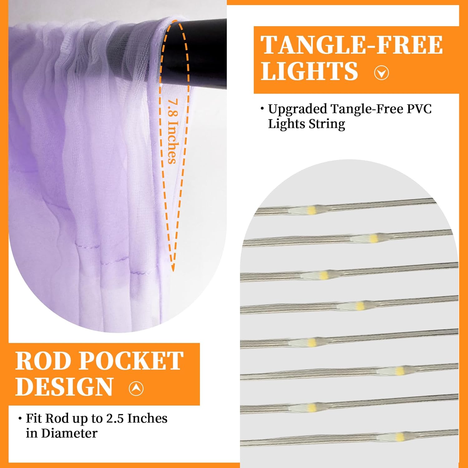 10x10ft Lavender Tulle Backdrop Curtain with Fairy Lights, Wrinkle-Free Sheer Wedding Backdrop for Birthday Parties, Baby Showers, Bridal Showers, Photo Shoots and Home Decorations, Lavender