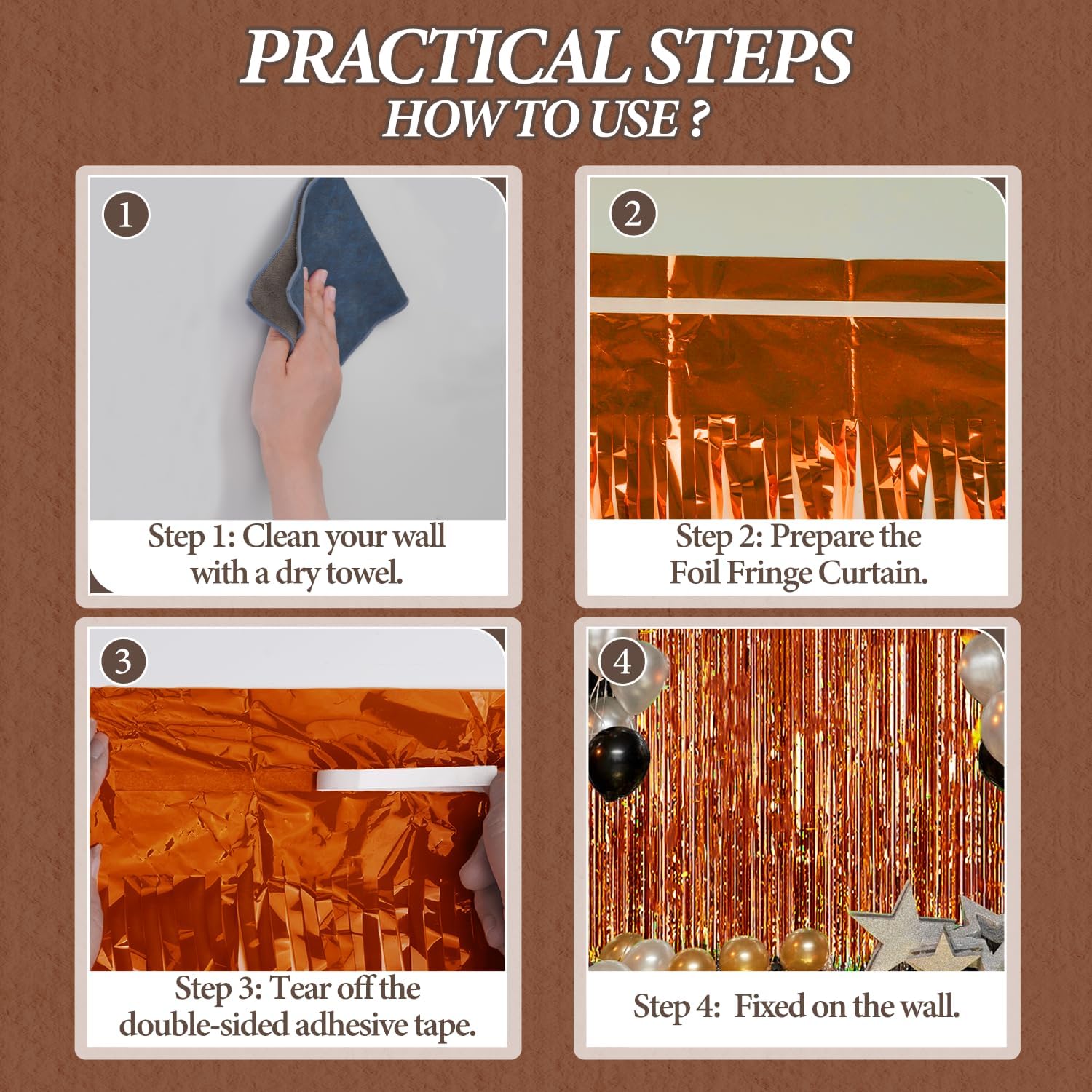 3 Pack Foil Fringe Backdrop - Bronze Shiny Tinsel Curtains for Party Decoration/Photo Booth Props - 3.3x8.2 FT Metallic Foil Backdrop for Birthday, Wedding, Graduation, Christmas.