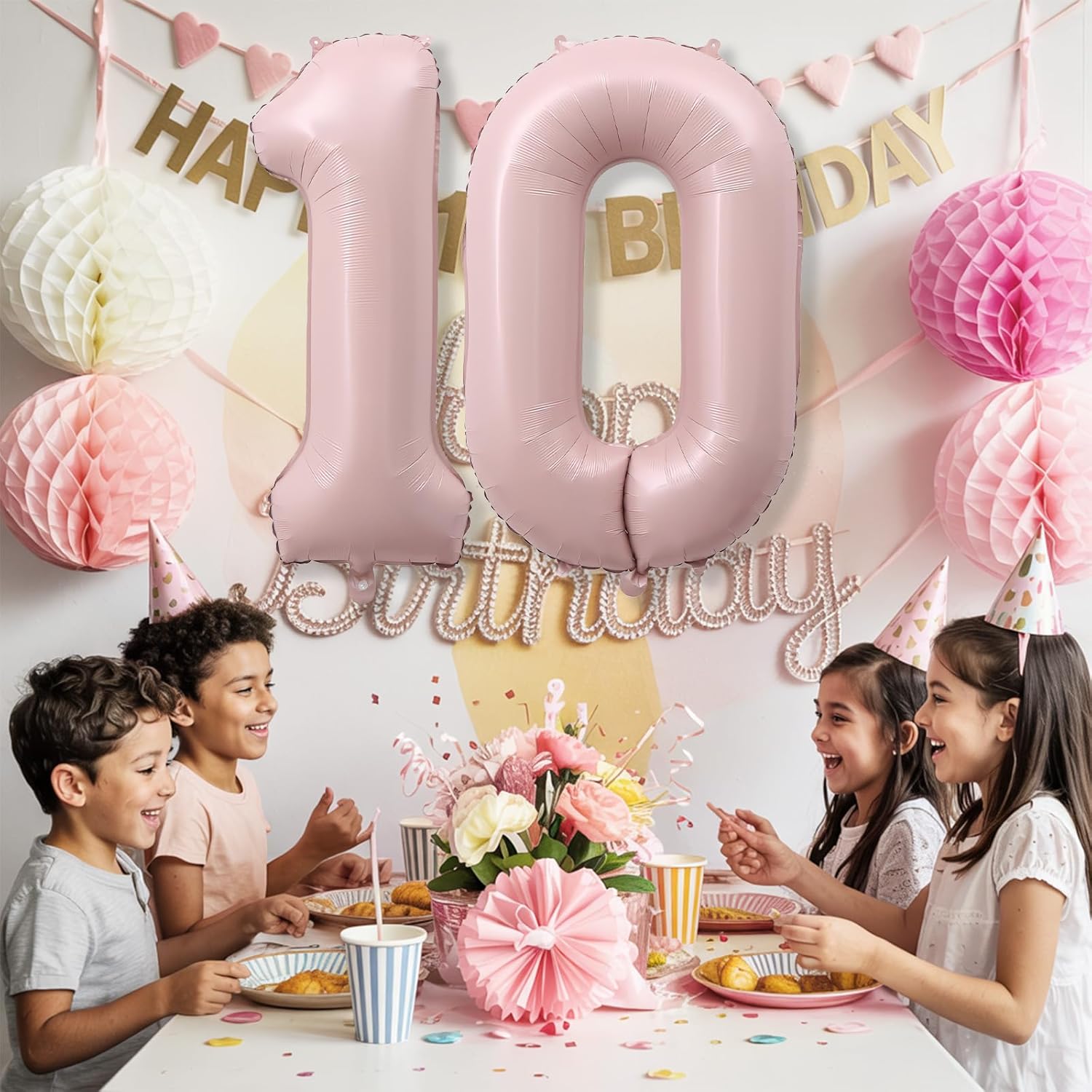 Pastel Pink Balloons Number 10, 40 Inch Foil Number 1 & 0 Balloons for 10 Year Old Birthday Decorations, Self Inflating Blush Dusty Pink Balloon for Girls 10th Birthday Party Anniversary Decorations