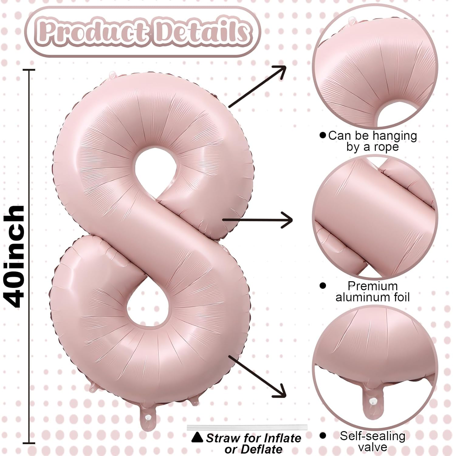 • Baby Pink Number 8 Balloon 40 Inch: Includes 1pc 8 balloon and a straw for easy inflation and deflation. This helium balloon is perfect for birthdays, anniversaries, or special occasions like a 8th, 18th, 28th, or 80th celebration