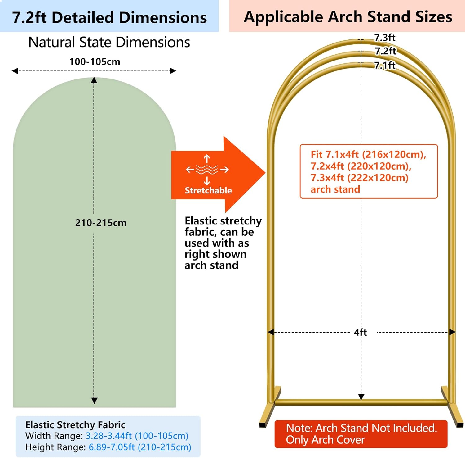 • Attention: ⚠️ This package only includes one piece of arch cover. Arch stand is not included. ⚠️ Please confirm the arch stand size you have on hand and the stand size that our arch fabric is suitable for before purchasing