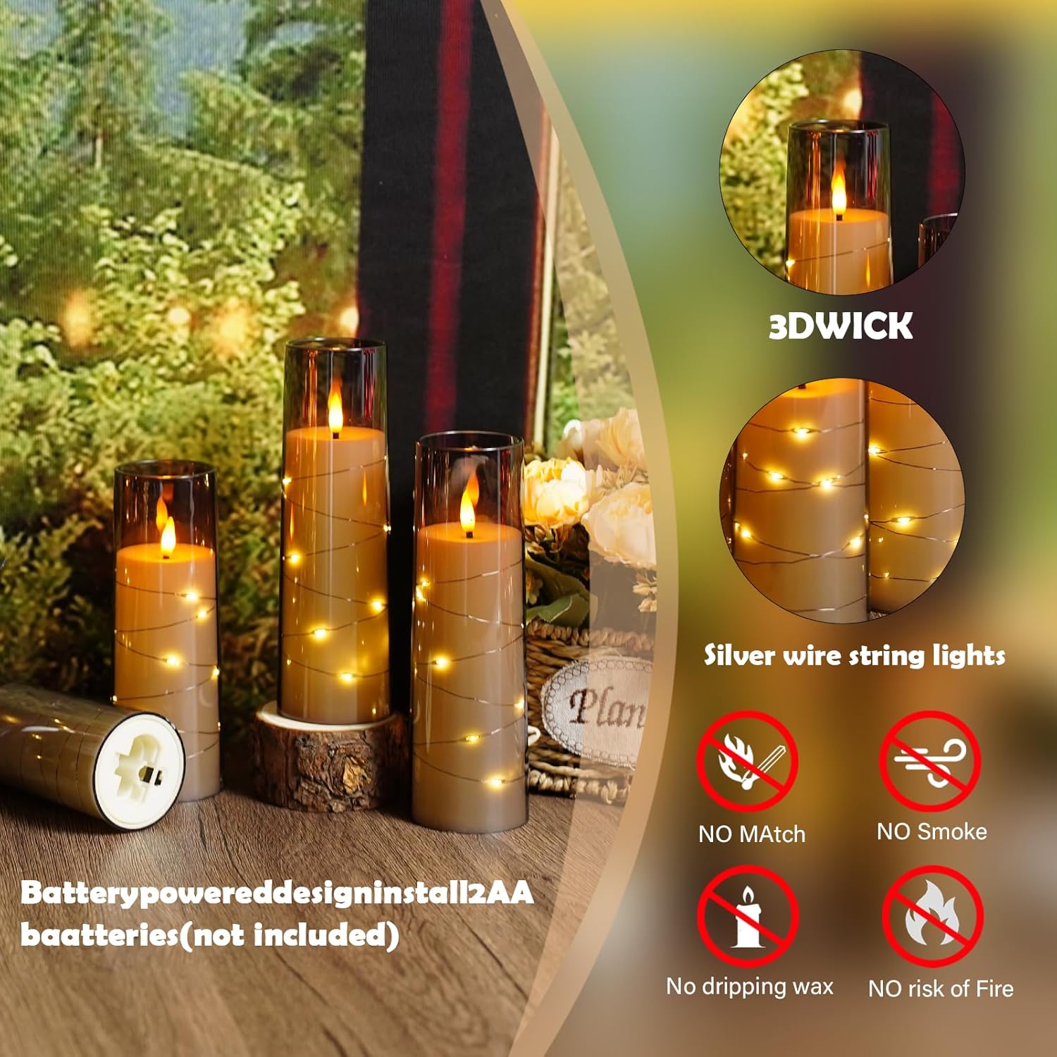 • 【Embedded Light Strings】: "Crafted to elevate contemporary living spaces, these flameless candles feature an innovative embedded starry-light string design, with the lights safely encased within the LED candles to create a warm and inviting ambiance."