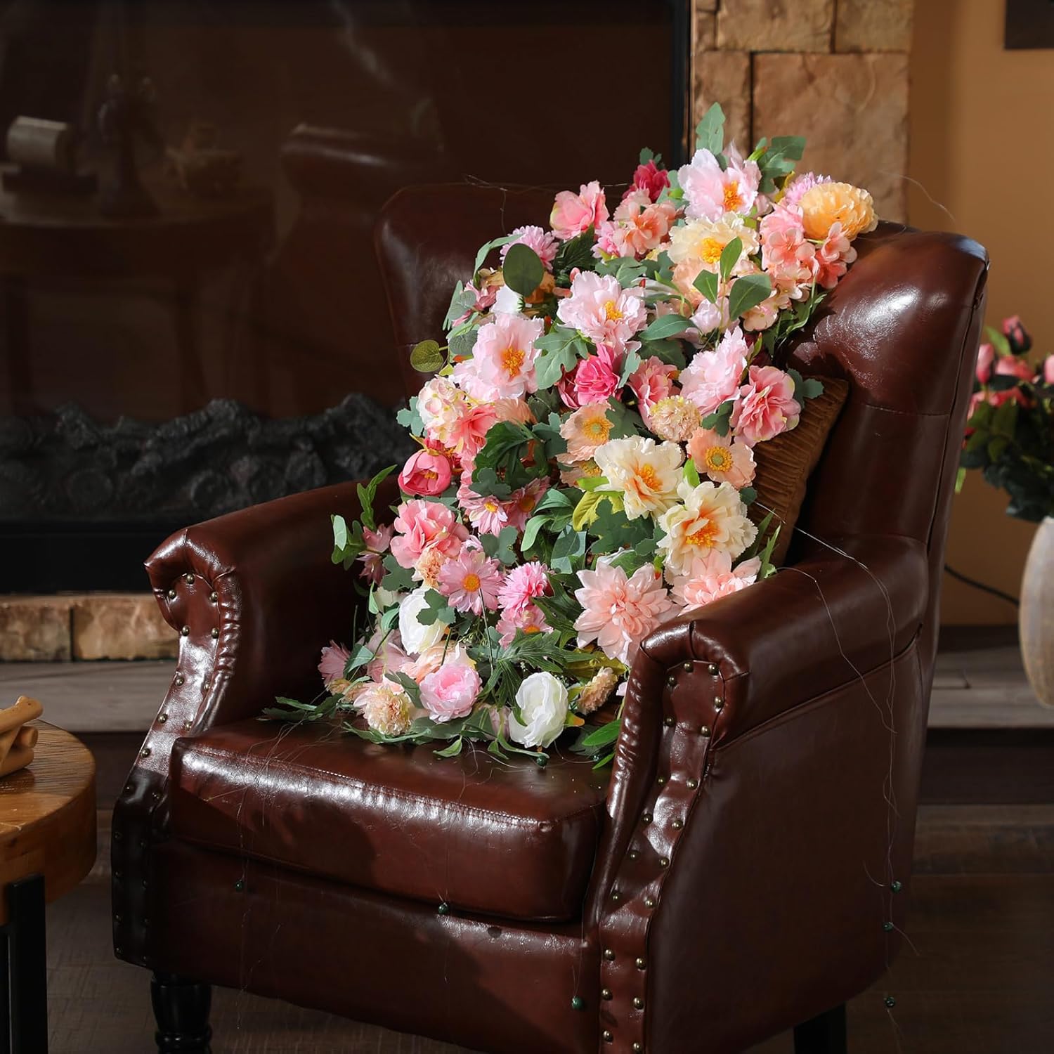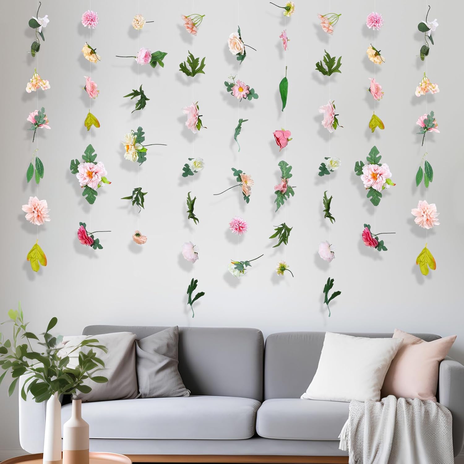 • Generous Size: each artificial wildflower garland measures about 5.9 ft /1.8 m with transparent silk thread, providing ample coverage for various decorative needs; Whether draped across mantels, twisted around banisters, or hung as backdrops