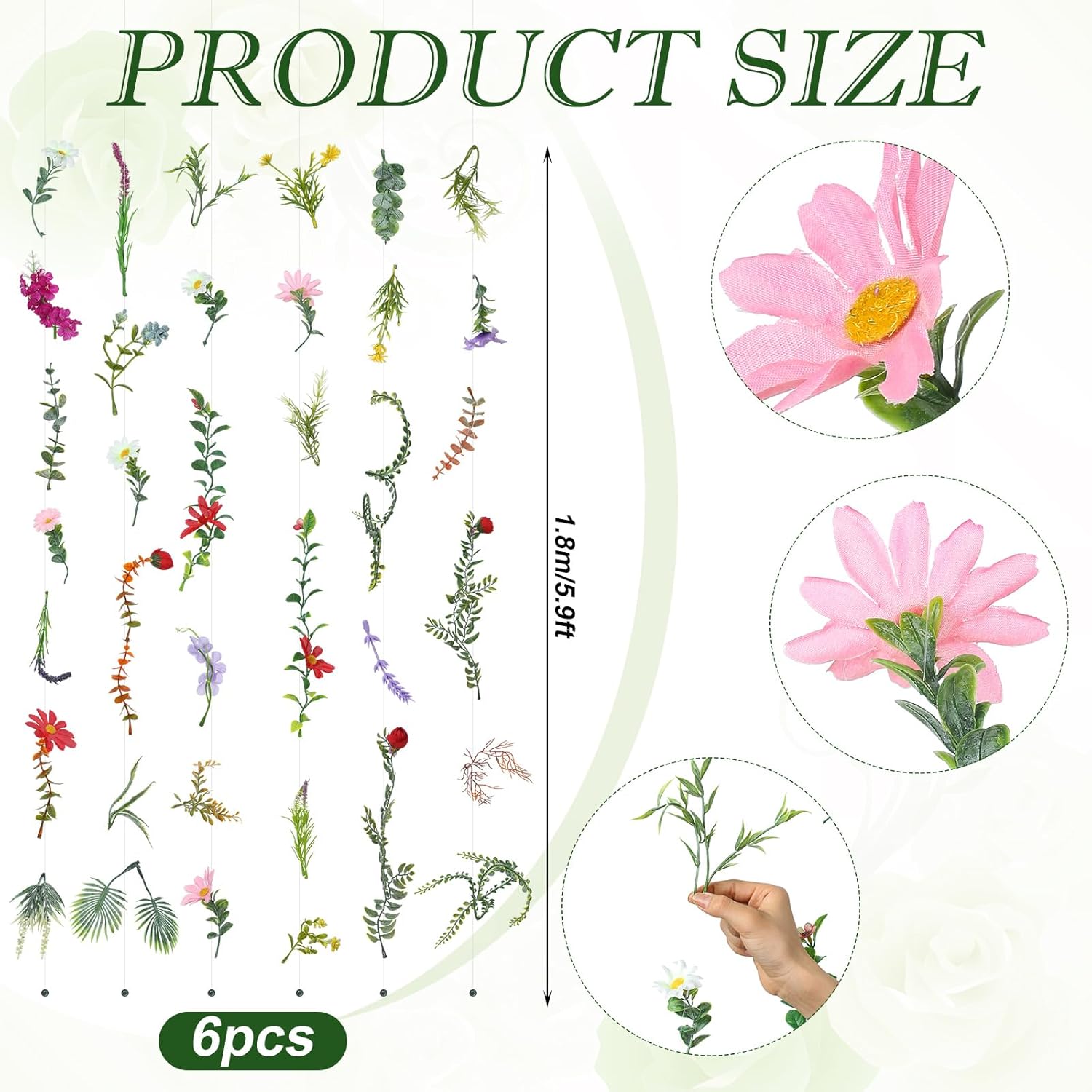 • Generous Size: each artificial wildflower garland measures about 5.9 ft /1.8 m with transparent silk thread, providing ample coverage for various decorative needs; Whether draped across mantels, twisted around banisters, or hung as backdrops
