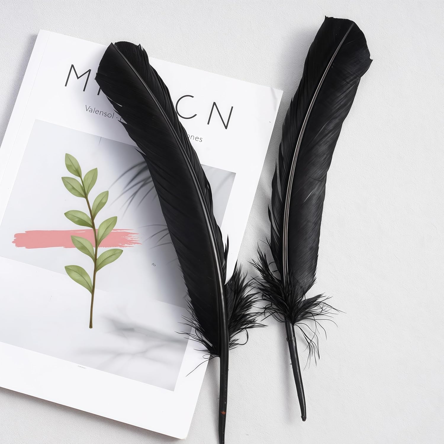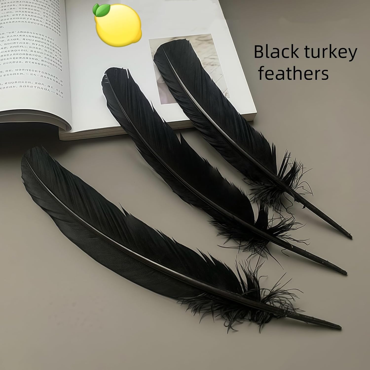 Black Turkey Feathers,22 Pcs Natural Feathers Bulk Long 10-12 inch (25-30cm),Turkish Feather for Crafts DIY Wedding Home Party Mardi Gras Decorations (Black)