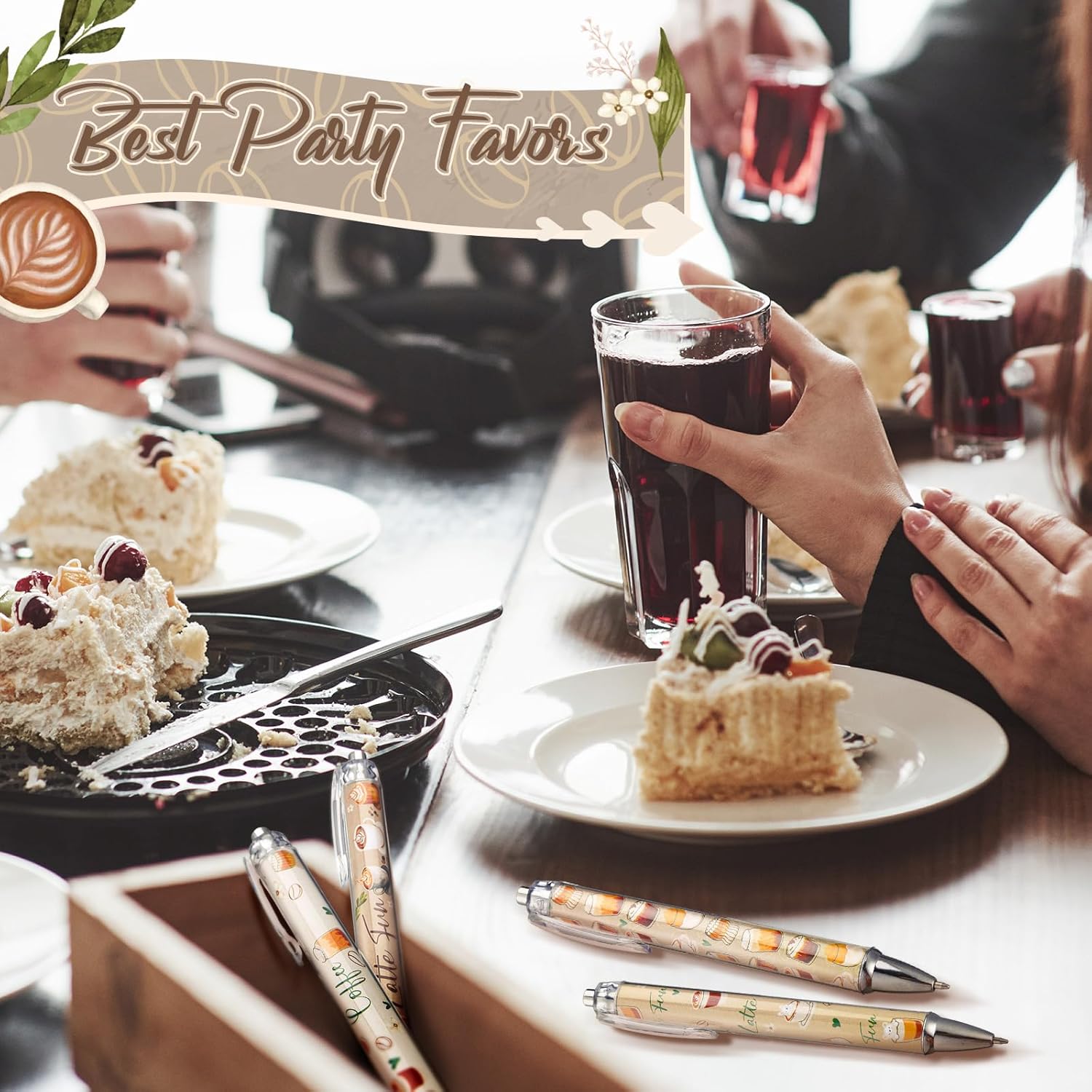 24 Pcs Coffee Party Gift Pens Bulk Party Favors Coffee Lovers Themed Decorations Black Ink Kawaii Ballpoint Pen for School Office Birthday Supplies Aesthetic Accessories