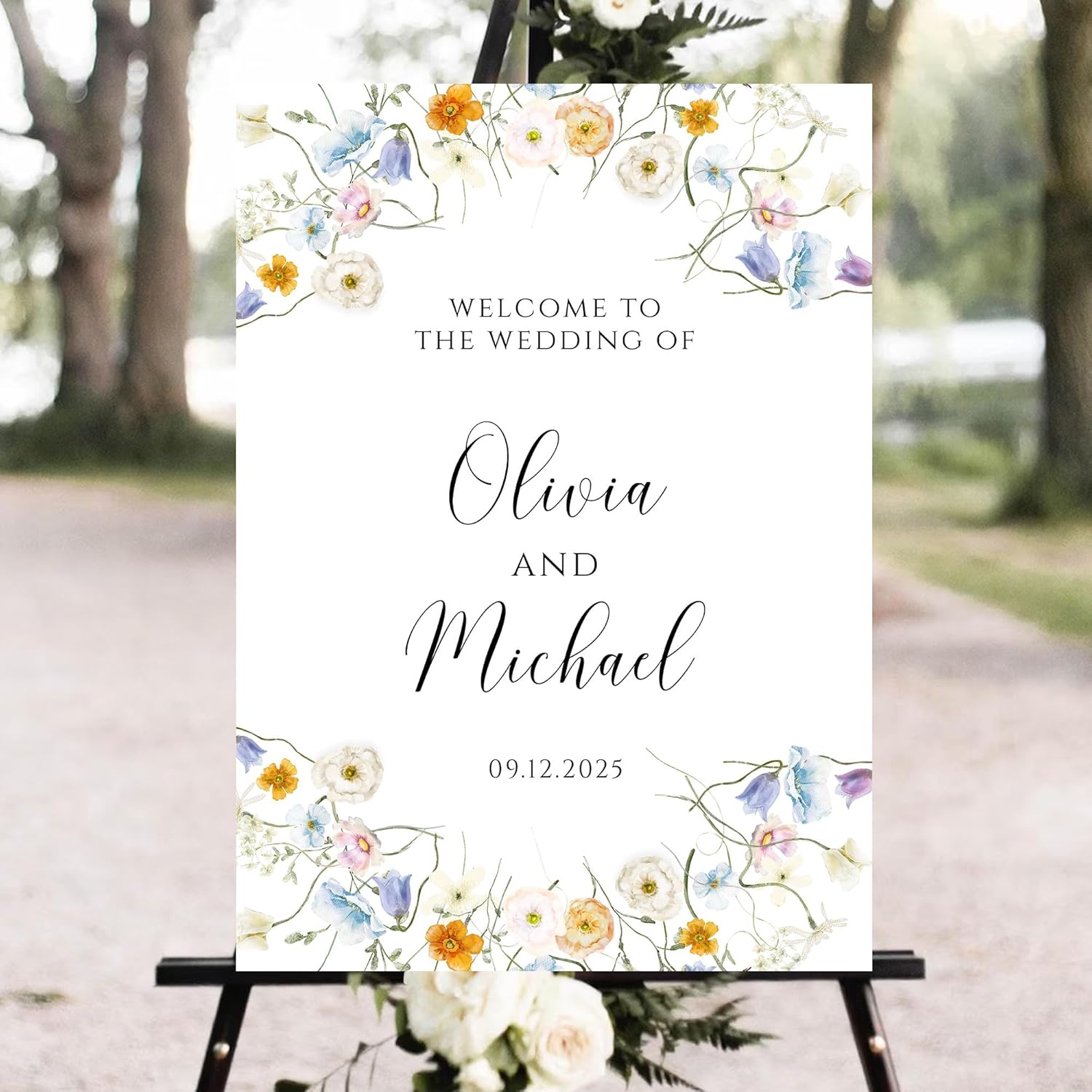 Personalized Wedding Welcome Sign, Welcome To Our Wedding Sign, 18 inches x 12 inches, Plastic, Vintage Style, Waterproof PVC, Customizable, Perfect for Indoor/Outdoor Use