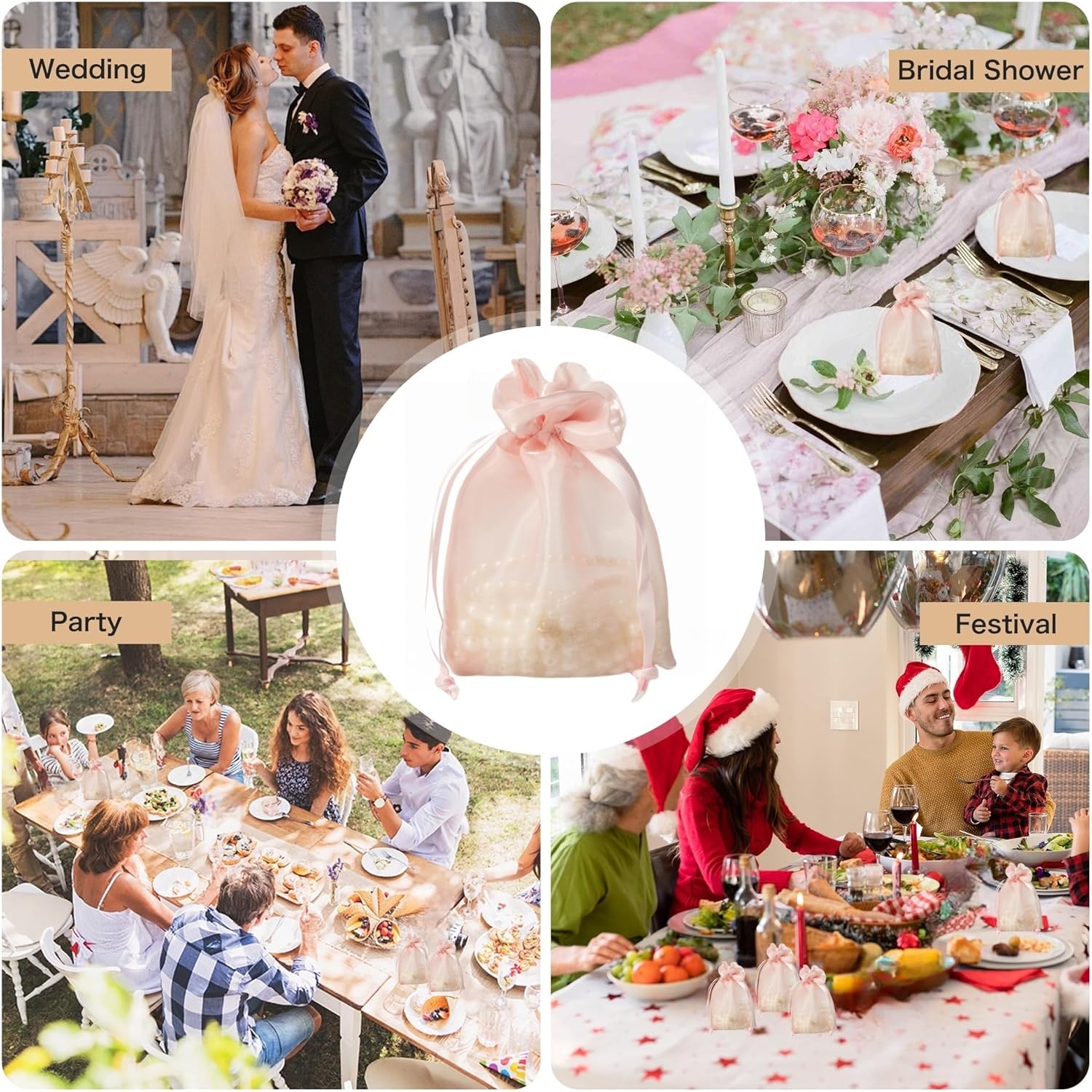 • OCCASIONS: Embrace the versatility of our organza drawstring bags for weddings, bridal and baby showers, birthday parties, christmas, Thanksgiving Day, Valentine's Day, Mother's Day and more. Whether you need bags for small business or simply gift for friends and family, our bags will elevate the presentation