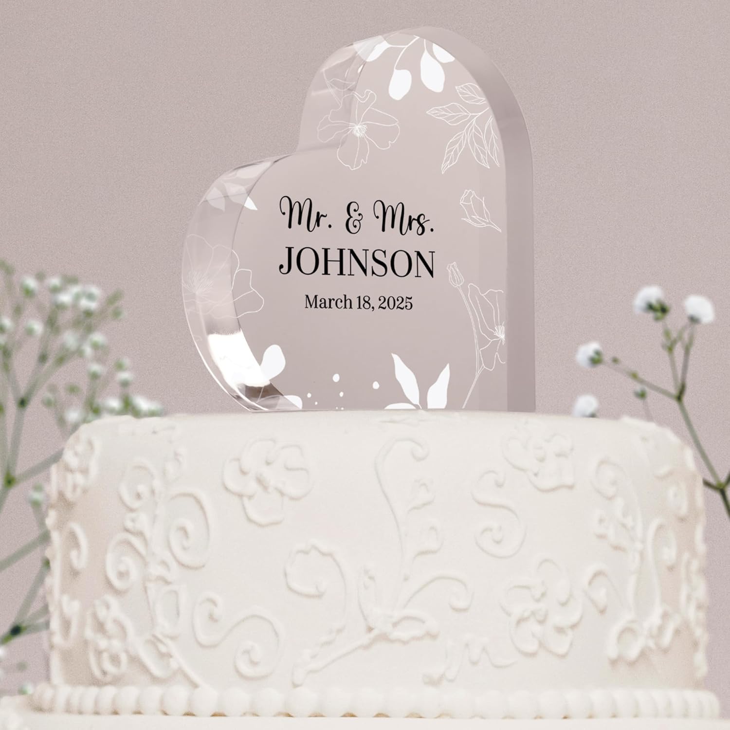 • Durable Quality: Made from premium acrylic, this topper is both lightweight and durable, ensuring it will stand the test of time as a cherished keepsake that will remind you of your big day for years to come.