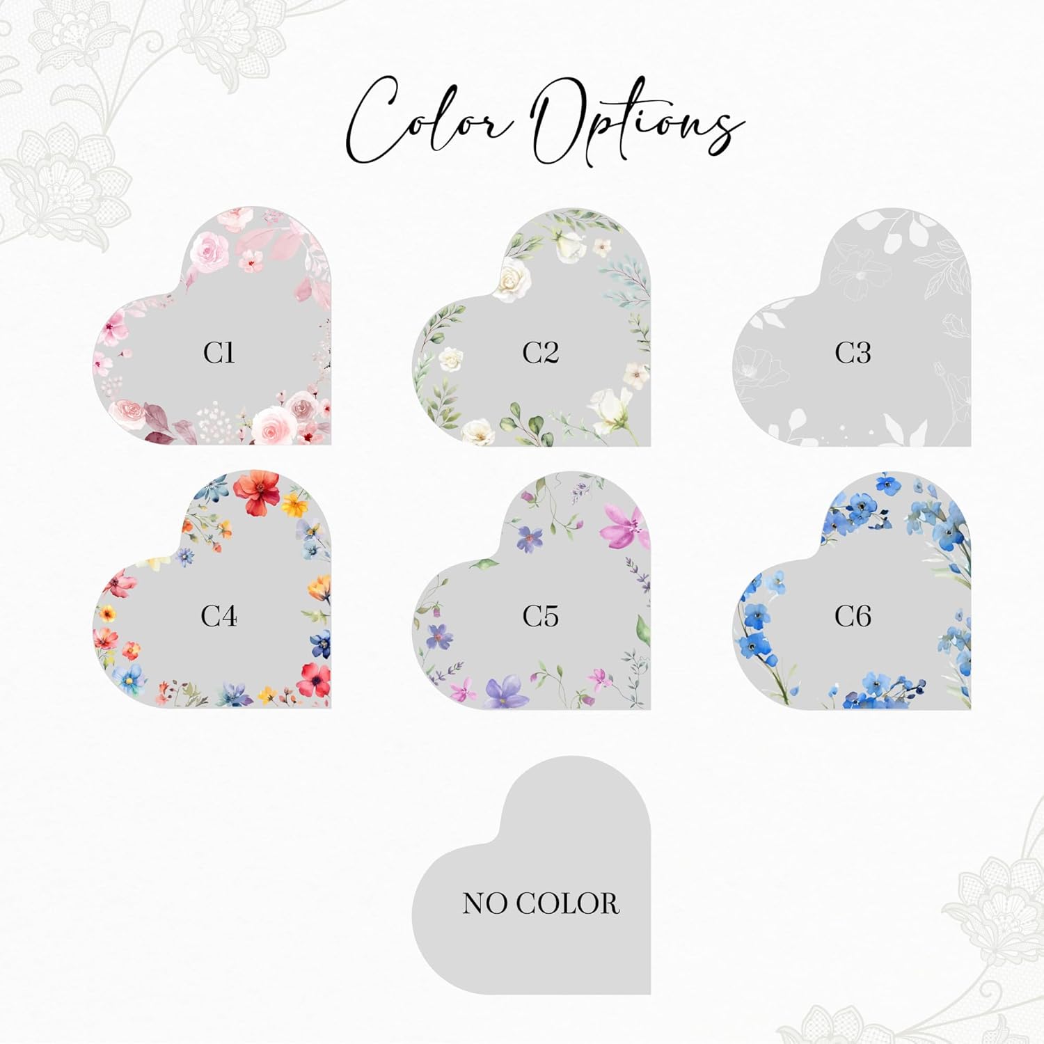 • Vibrant Color Choices: With 7 color options (inccluding “No Color” option), you can select the color that best complements your wedding color palette, ensuring your cake topper blends seamlessly with your décor/theme.