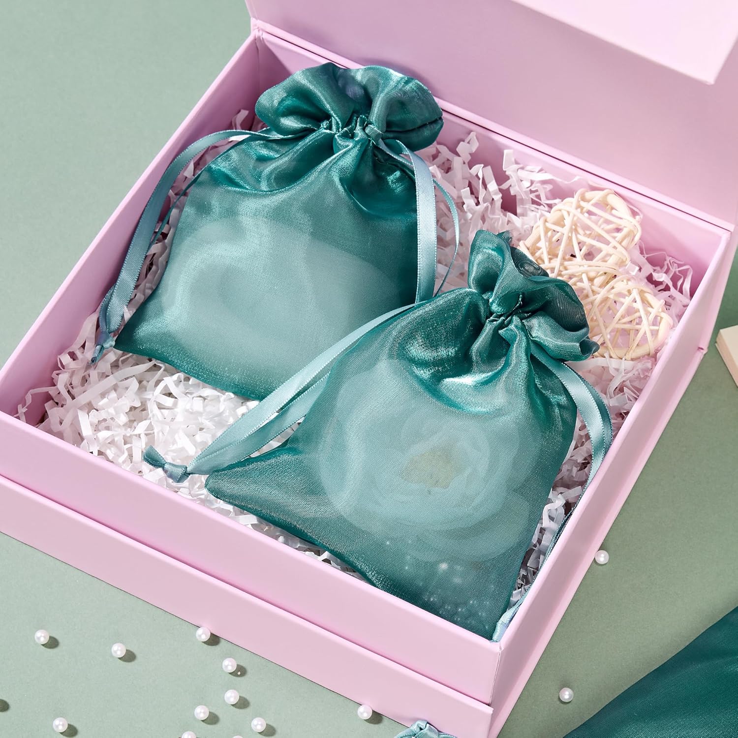 • PREMIUM MATERIAL: Crafted with high-density organza and satin drawstrings, these favor bags have a glamorous gloss that changes with the light, which is different from ordinary organza bags, makes it beautiful and elegant, which is good for special occasions. The delicate sheer fabric combines ethereal translucency with surprising durability, transform small items like jewelry and cosmetics into luxurious displays