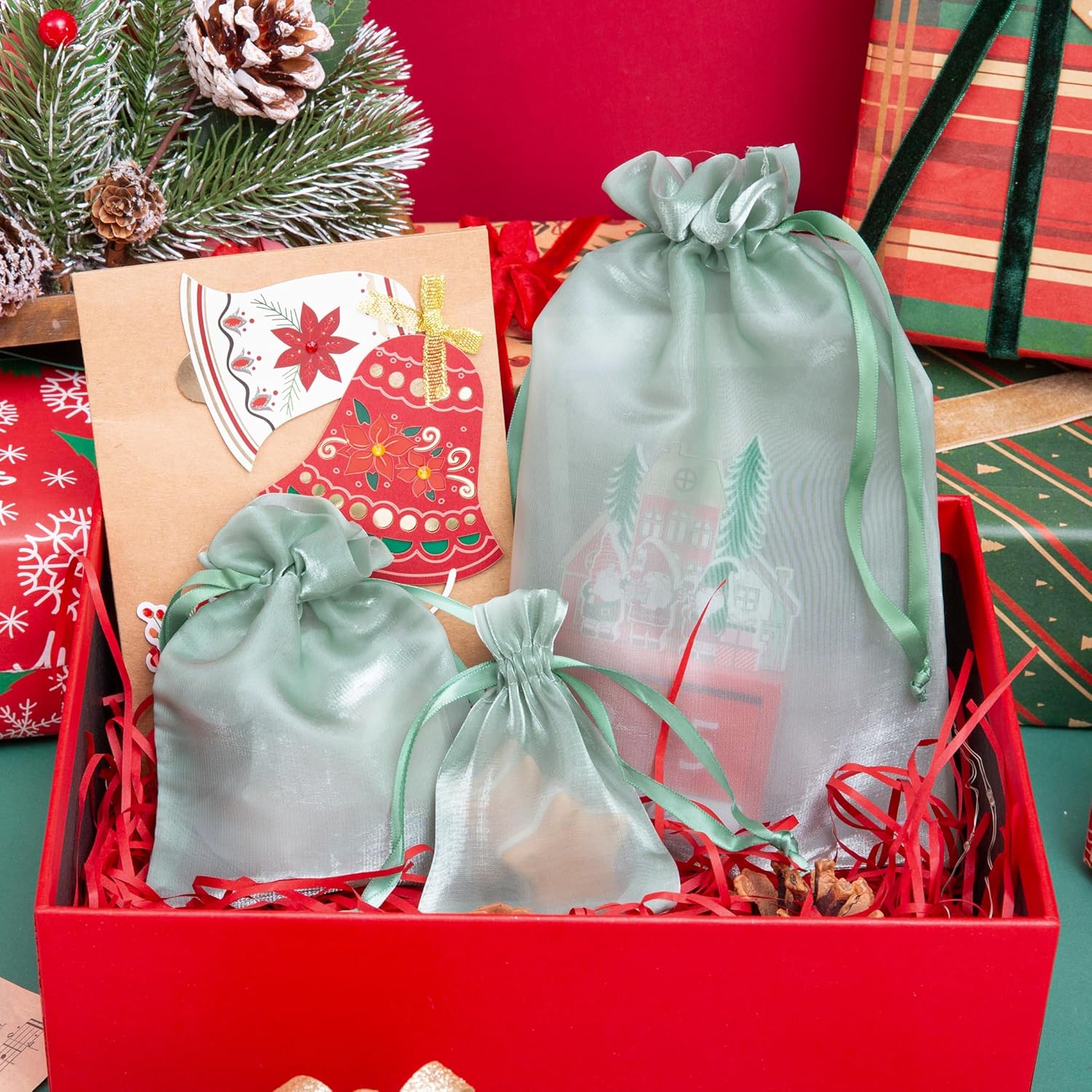 QIANF 20 Pcs Sage Green Small Organza Bags 4X6 inch for Wedding Favors with Drawstring, Mini Mesh Gift Bags Jewelry Pouch for Candy Bridal Shower Party Favor Baby Shower Christmas
