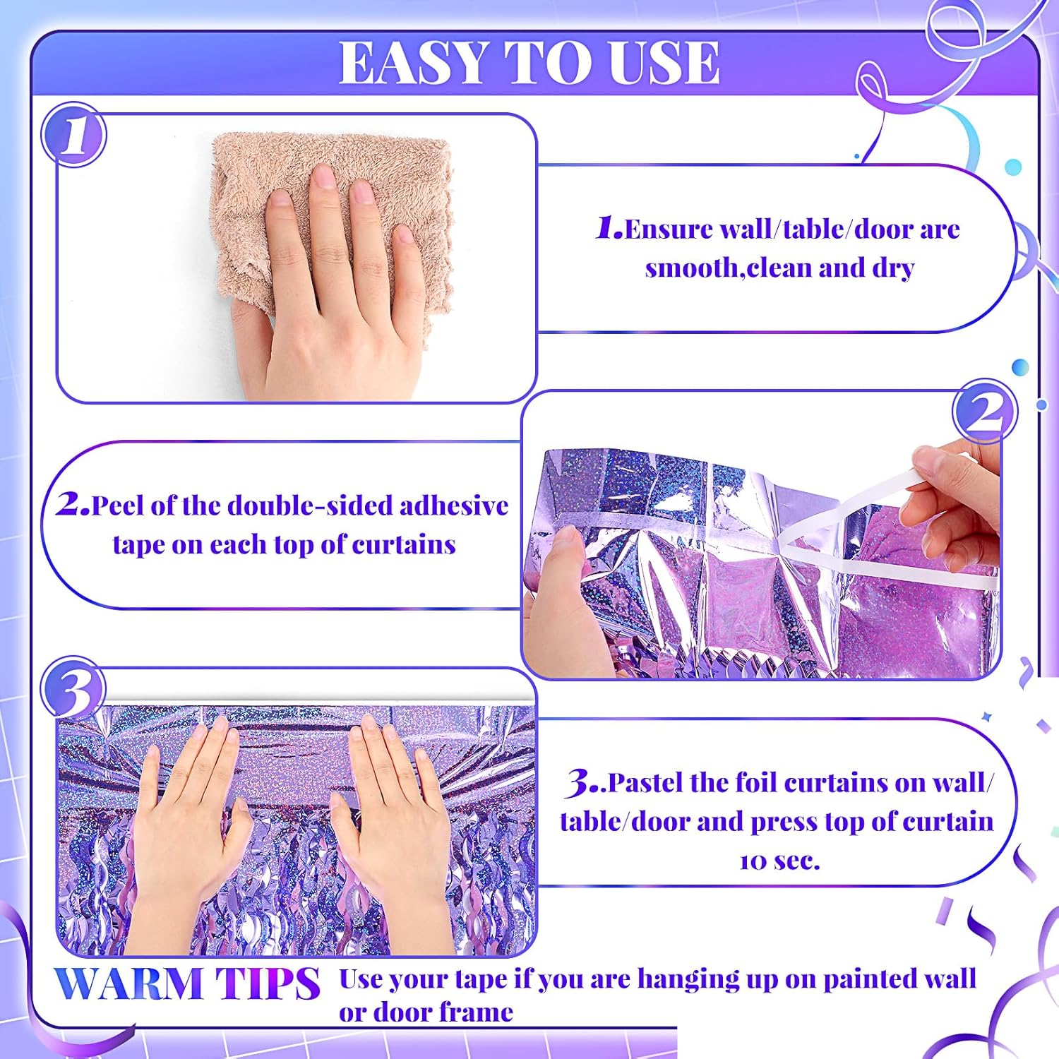 • Sufficient Quantity: you will get 6 pieces of tinsel foil fringe curtains in purple, which are sufficient in quantity to satisfy your party scene setting and decorating needs, also you can share them with your mates