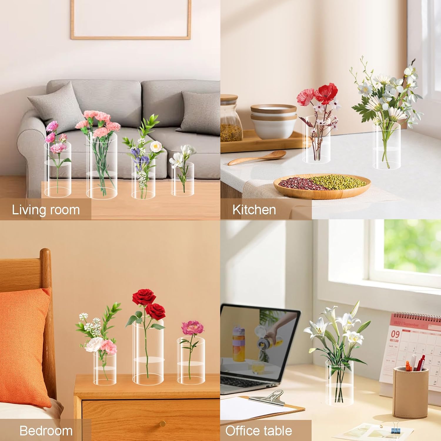 • Adequate Quantity: You will receive 48 packs of cylinder acrylic vases in 4 different heights: 4 inches, 6 inches, 8 inches, and 10 inches, with 12 packs for each size. The quantity is large enough to meet the needs of various floral decorations.