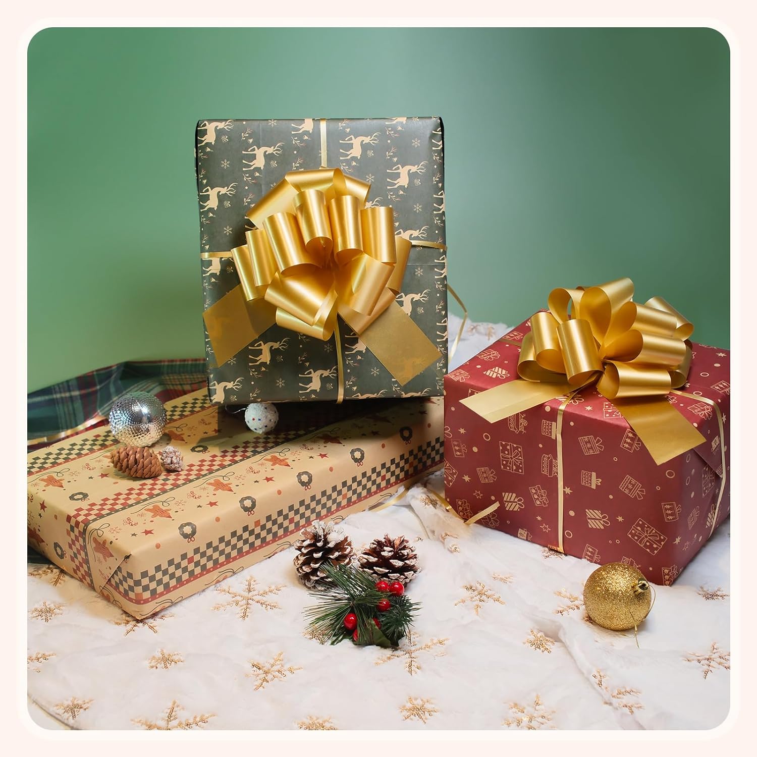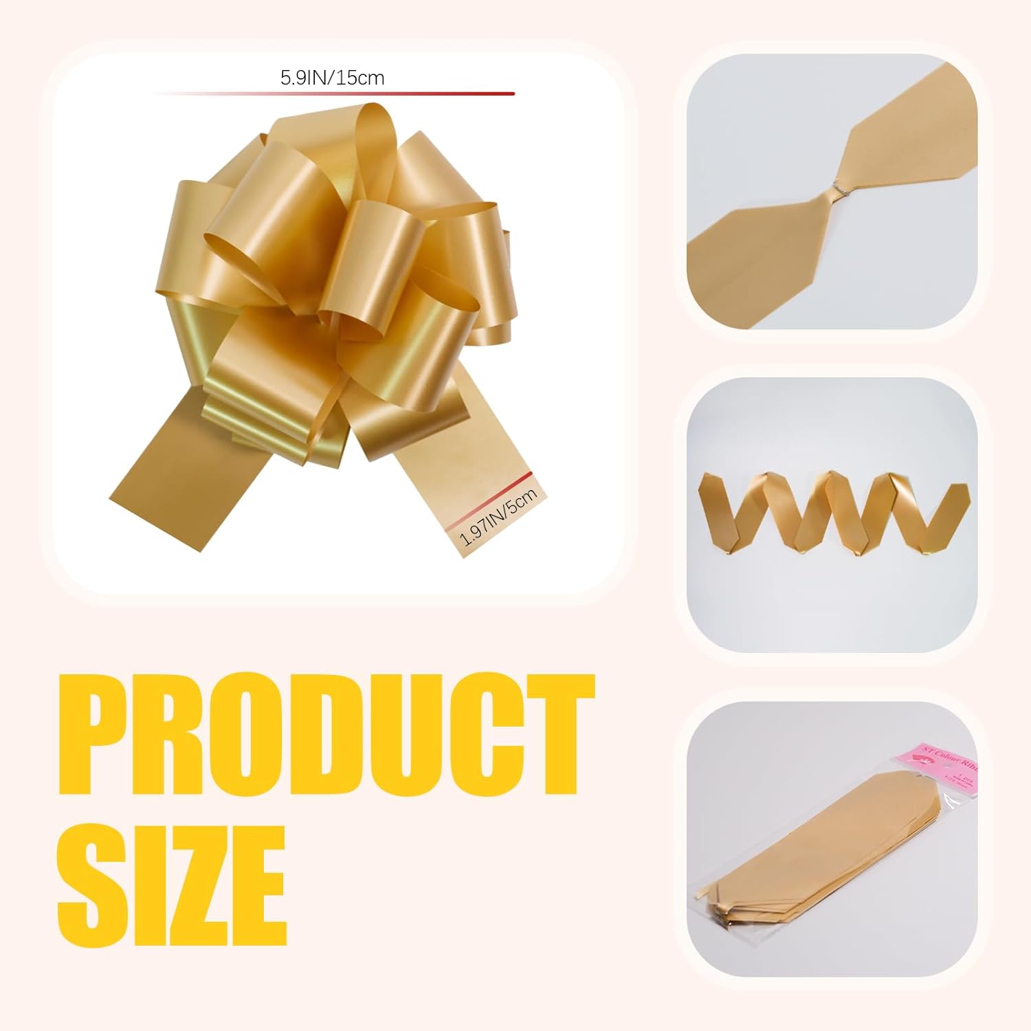 12 PCS 6 Inch Golden Pull Bows - Perfect for Gift Wrapping, Wedding Decor, Car Bows, Birthday Parties, Christmas and Valentine's Day