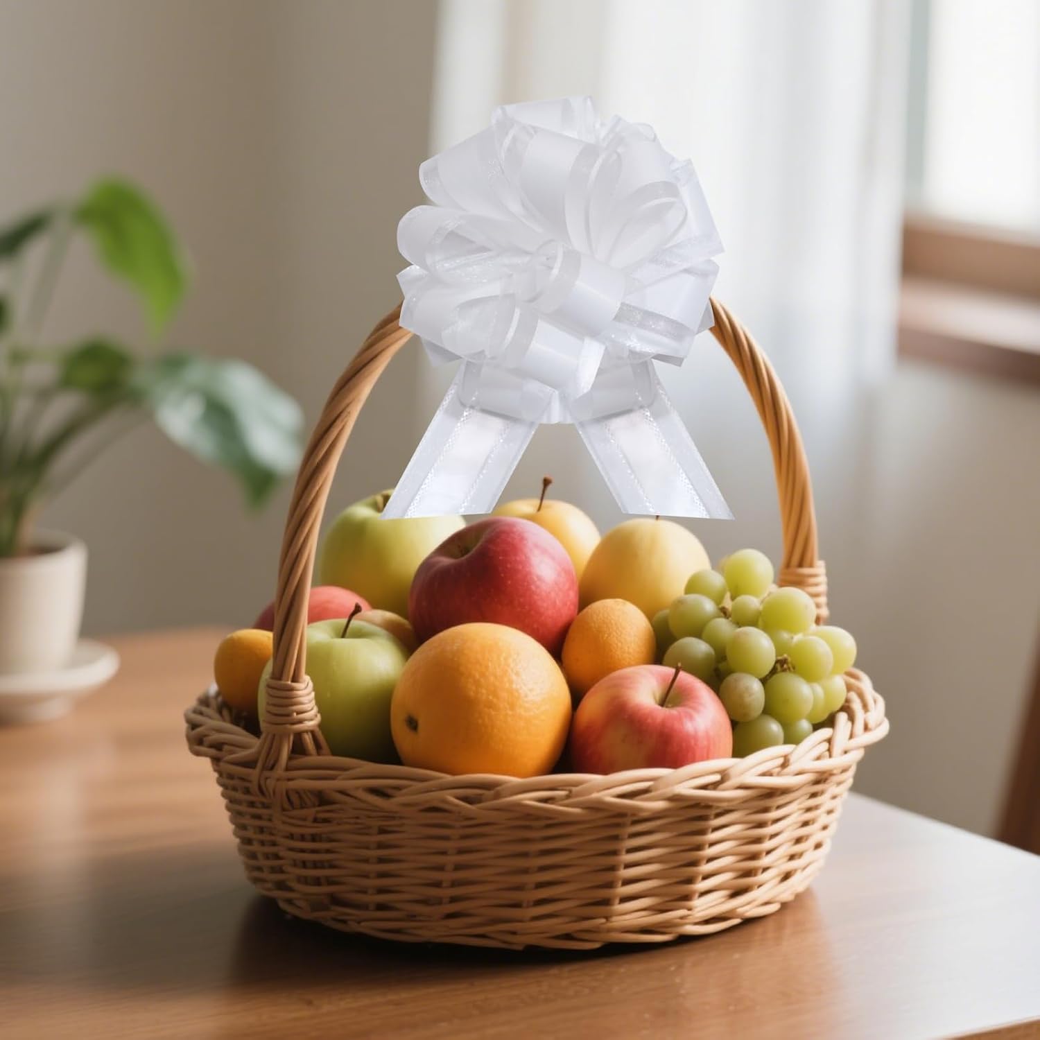12 PCS 6 Inch Large Pull Organza White Bows - Perfect for Gift Wrapping, Wedding Decor, Car Bows, Birthday Parties, Christmas and Valentine's Day