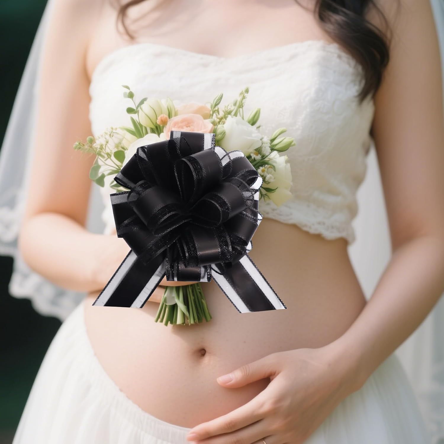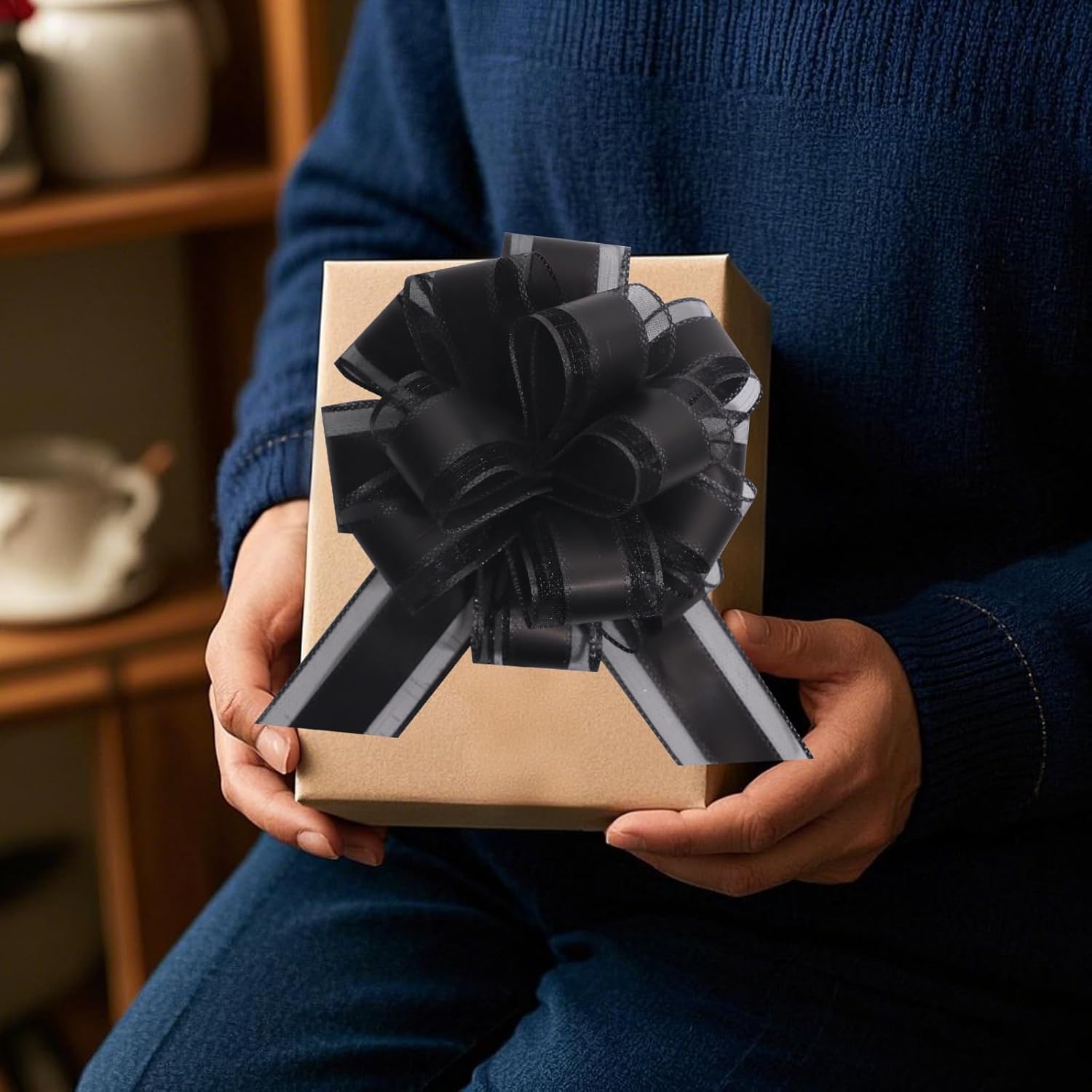 12 PCS 6 Inch Large Pull Organza Black Bows - Perfect for Gift Wrapping, Wedding Decor, Car Bows, Birthday Parties, Christmas and Valentine's Day