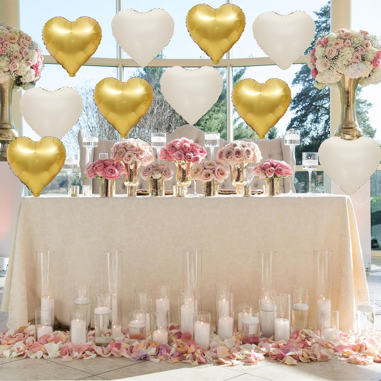 Sand White Gold Heart Balloons,12Pcs 18Inch Cream White Metallic Gold Heart Shaped Foil Helium Foil Balloons for Baby Shower Birthday Anniversary Wedding Engagement Party Decorations