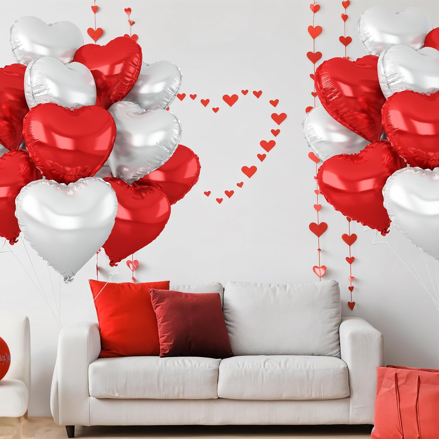• WIDELY APPLICATION:This red silver heart balloon can be used for a variety of occasions,such as birthday,anniversary,Valentine's Day,Mother's Day,baby shower,gender reveal,weddings,engagement,bridal shower,marriage proposals and other parties,can also be used as a photo background,etc.Make a deep impression on the party guests.