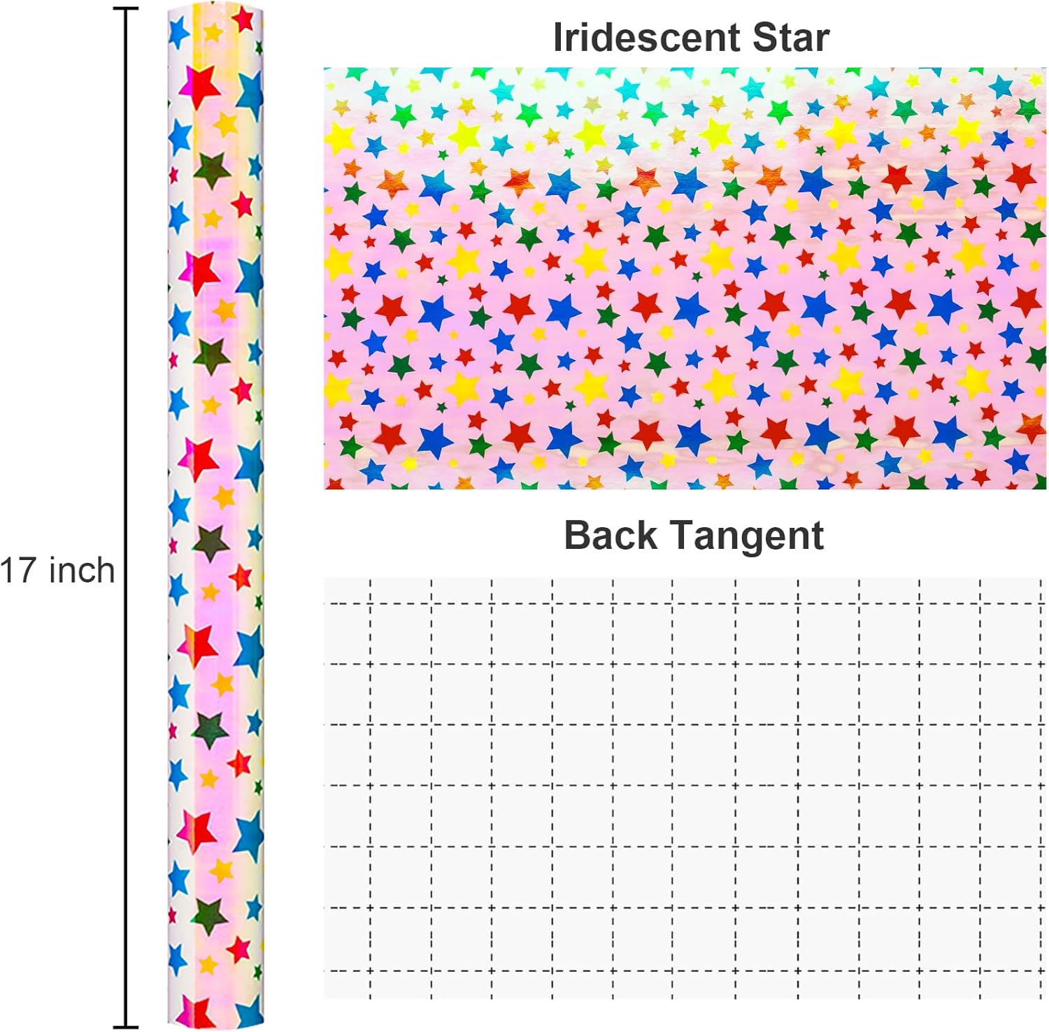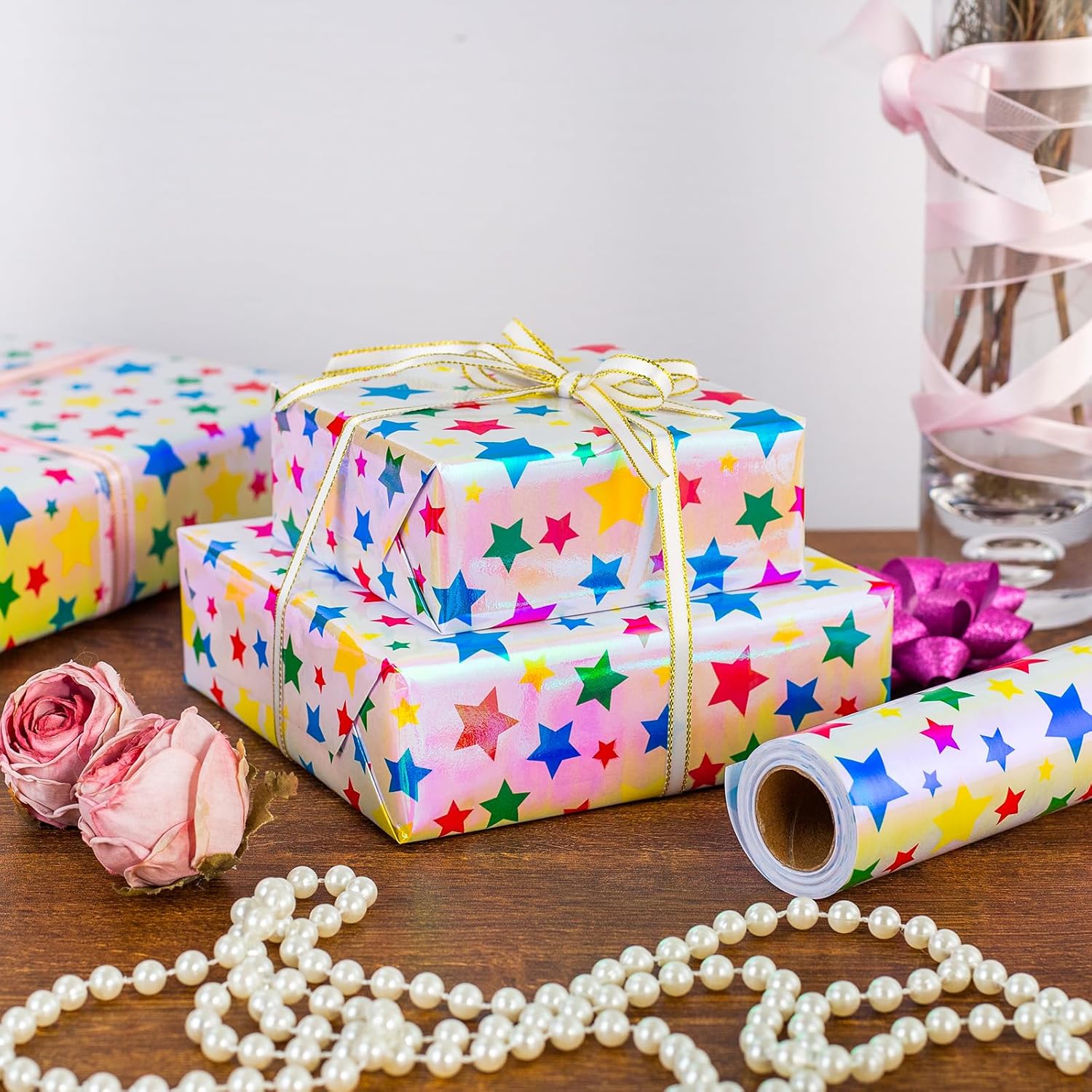 • Iridescent Wrapping Paper: Features a stylish pink star pattern, making your gift wrap stand out and look extra special. The back has grid lines for easy cutting and less waste