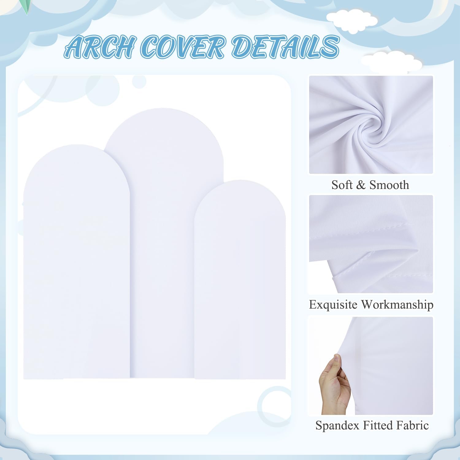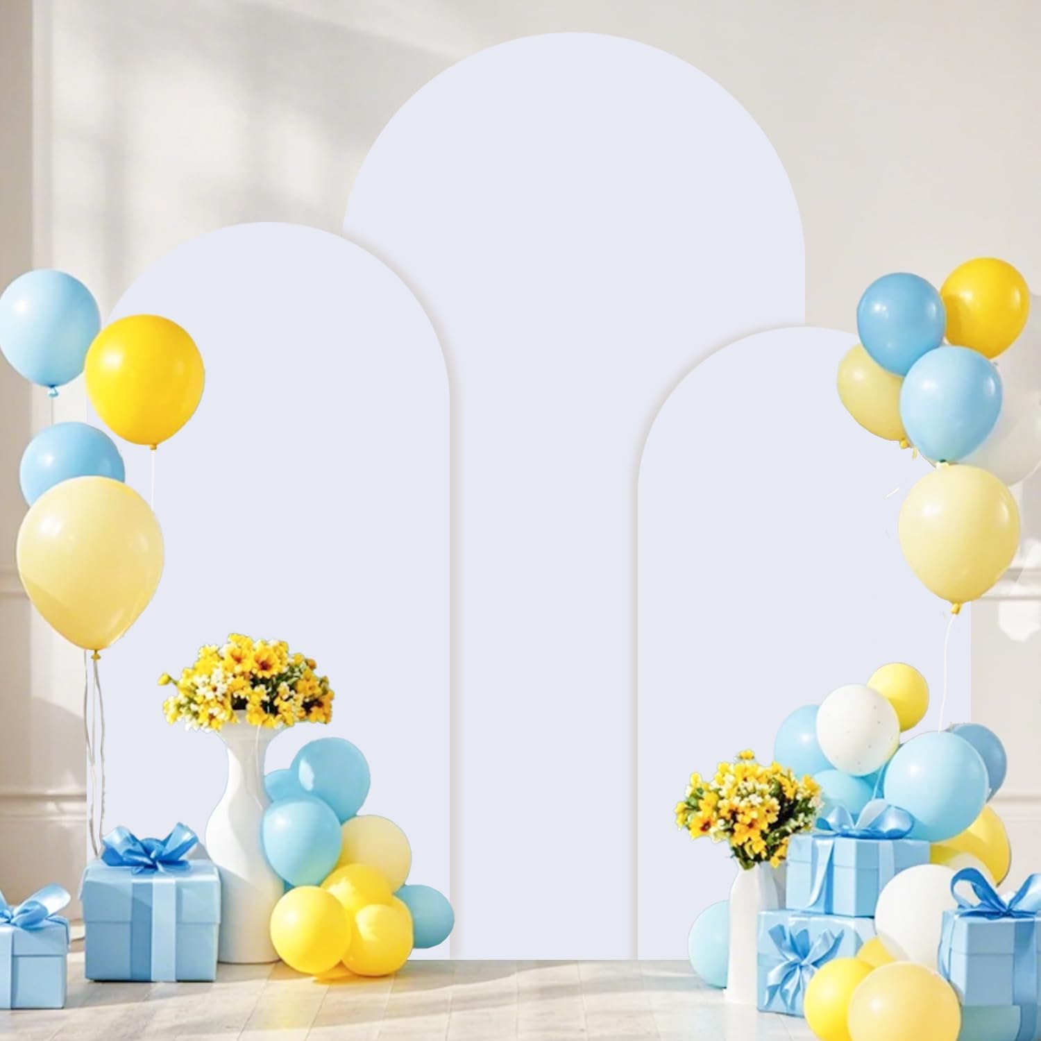 • 🧸【Size Information- Arch Stand and Cover Set】Backdrop Stand with Cover includes 3 gold metal arch backdrop stands and 3 white arch cover in sizes 7.2FT x 4FT(H x W), 6.6FT x 3.3FT(H x W) and 6FT x 2.6FT(H x W). The backdrop arch stand with cover is certain to meet your decoration needs and add a charming look to your celebrations.