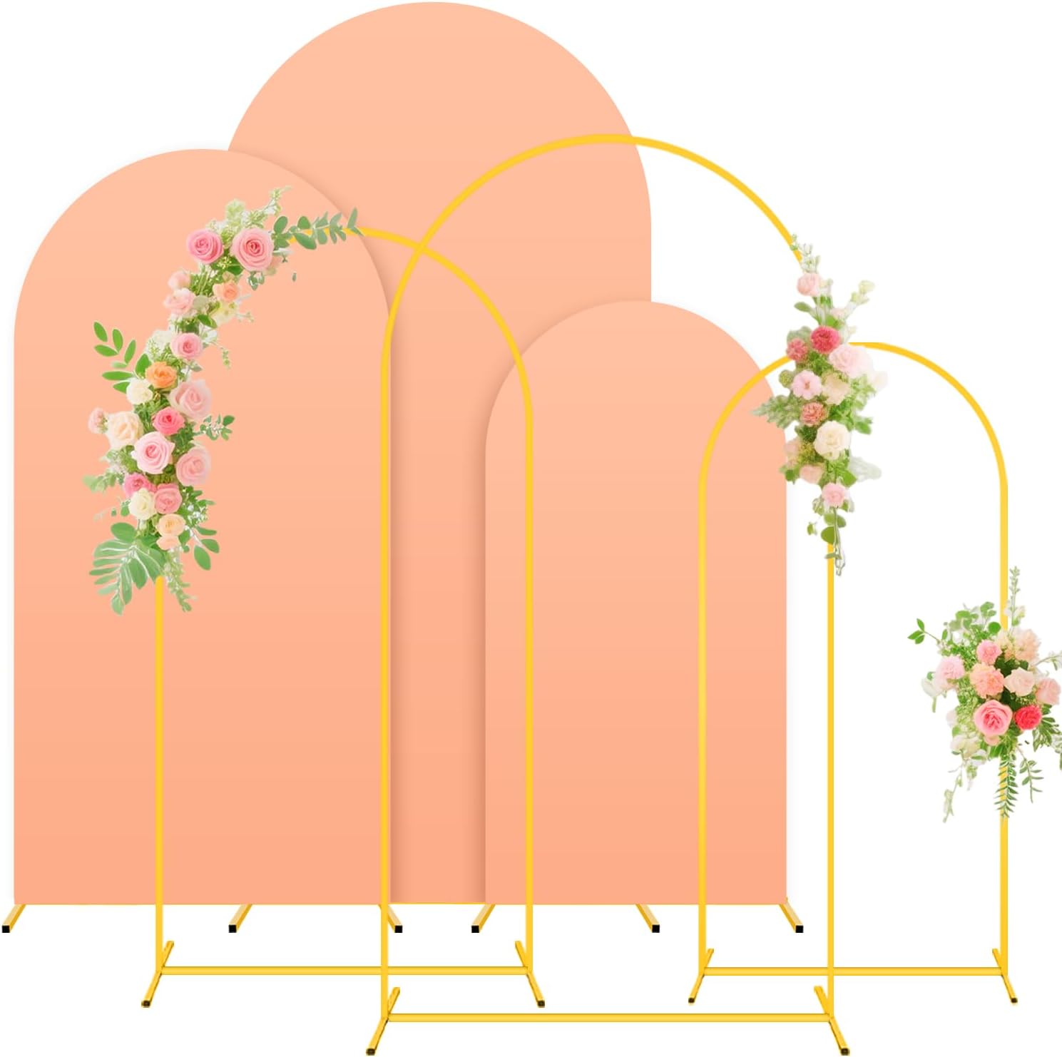 Metal Arch Backdrop Stand Set of 3 with Cover 7.2FT, 6.6FT, 6FT Wedding Arch Stand Arched Frame and Peach Arch Covers Stretchy Backdrop Spandex for Birthday Party Baby Shower Graduation Ceremony Decor