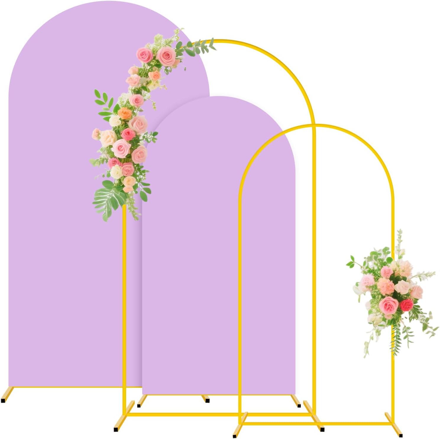• đŸ„‚ă€Package Included - Metal Arch Backdrop Stand and Cover Set】You will receive 2 gold metal arch backdrop stand and 2 lavender arch cover. Size: Size: 7.2ft H x 4ft W, 6ft H x 2.6ft W. Let's create unforgettable moments with our arch backdrop stand cover!