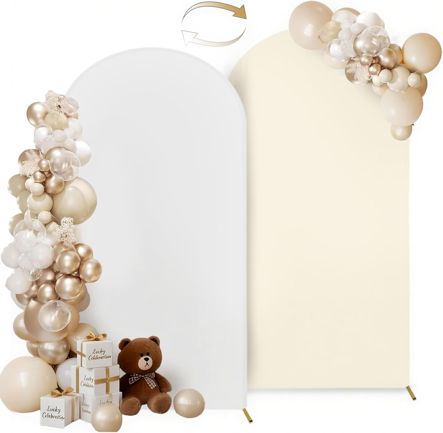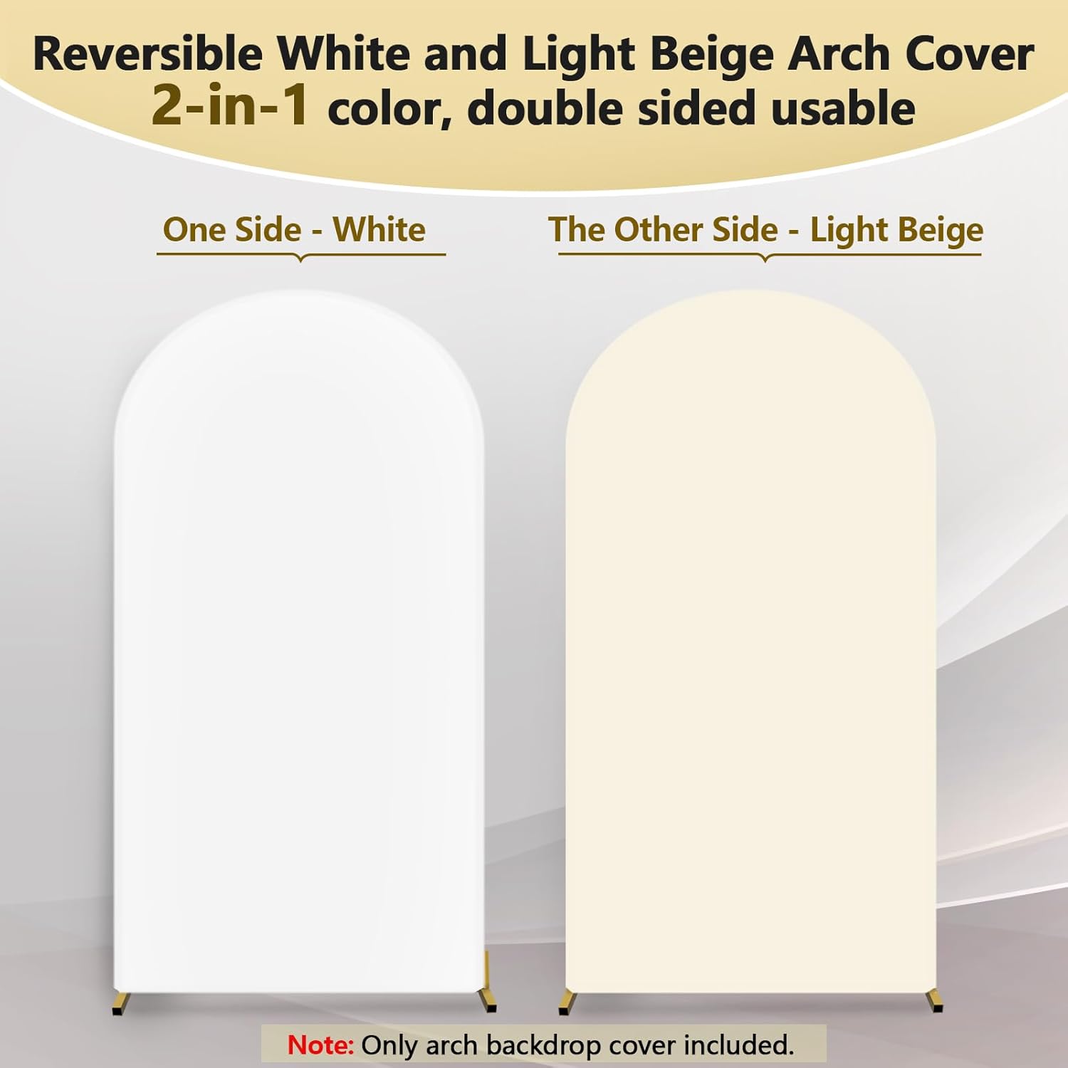 Hemmotop 7.2 ft Arch Backdrop Cover (One Piece Double Color), White and Light Beige Spandex Arch Stand Covers, Fabric Stretchy Background for Balloon Arches, Wedding, Birthday Party, Baby Shower