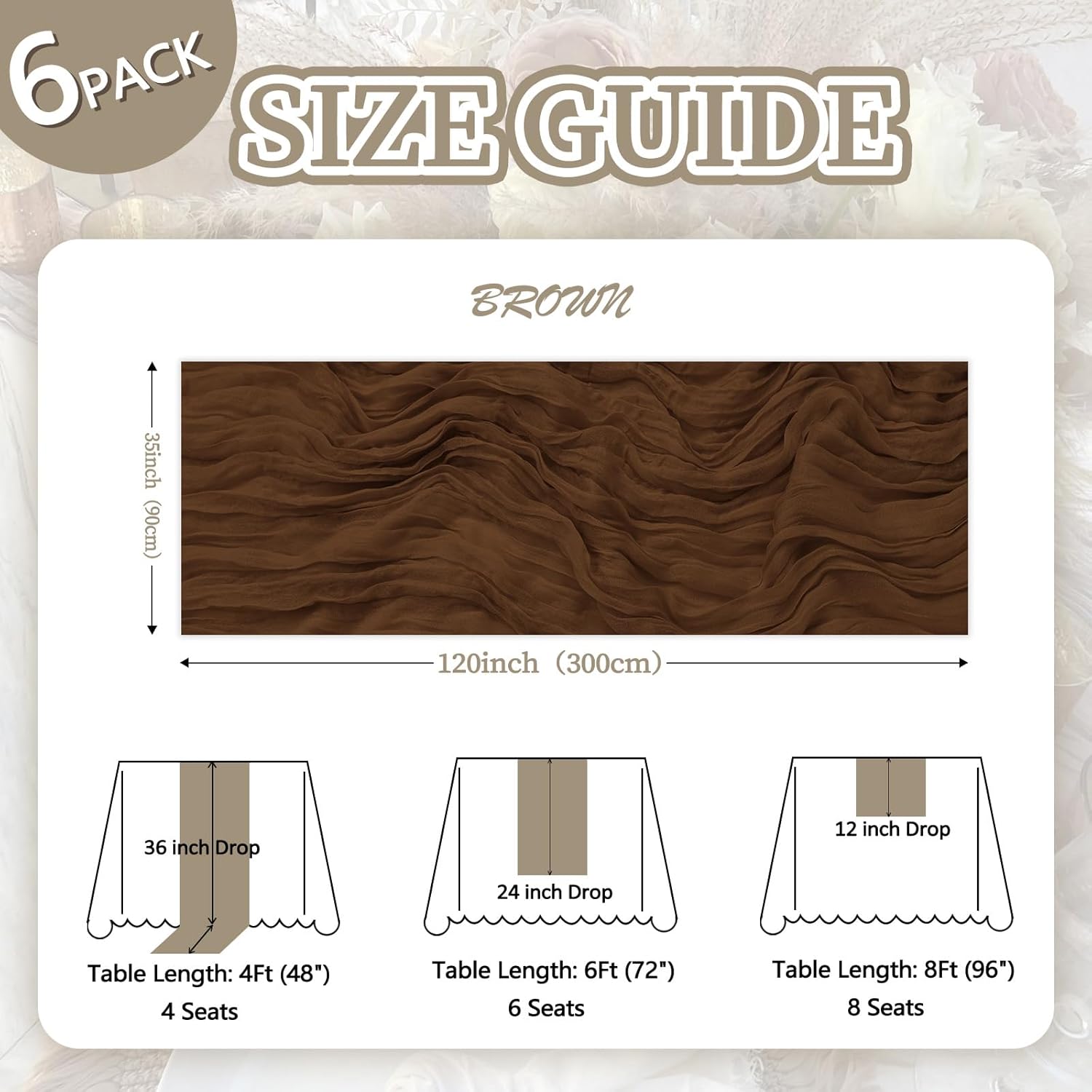 • 【Package Included】You Will Be Delighted To Receive 6 Packs Of Brown Table Runner. The Brown Cheesecloth Table Runner Quantity Is Abundant, Fully Meeting Your Daily Use And Various Event Needs. The Size Of The Table Runners Is 35 x 120 Inch, Which Can Perfectly Fit Tables Or Chairs In Various Event Scenarios. Besides, We Have Carefully Prepared A Wide Range Of Color Options For You, Which Are Highly Suitable For Creating A Romantic And Extraordinary Atmosphere.