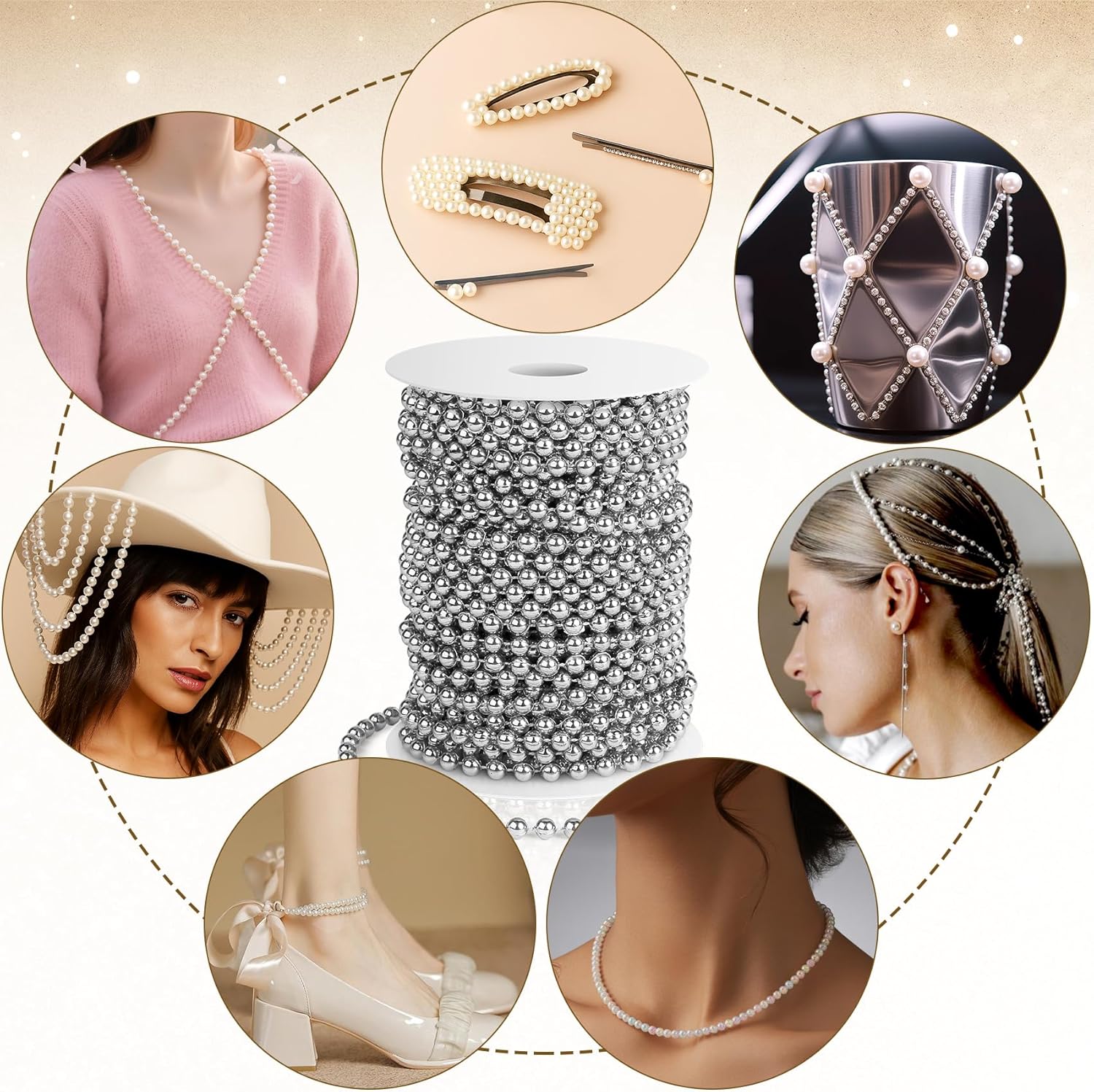 • Wide Applications: The pearl string is perfect for DIY crafts and decorations such as DIY jewellery, hair accessories, clothing, shoes, cards, scrapbooking, bridal bouquets, tiaras, wedding wreaths, wedding backdrops, flowers, porches, tables, chairs and more