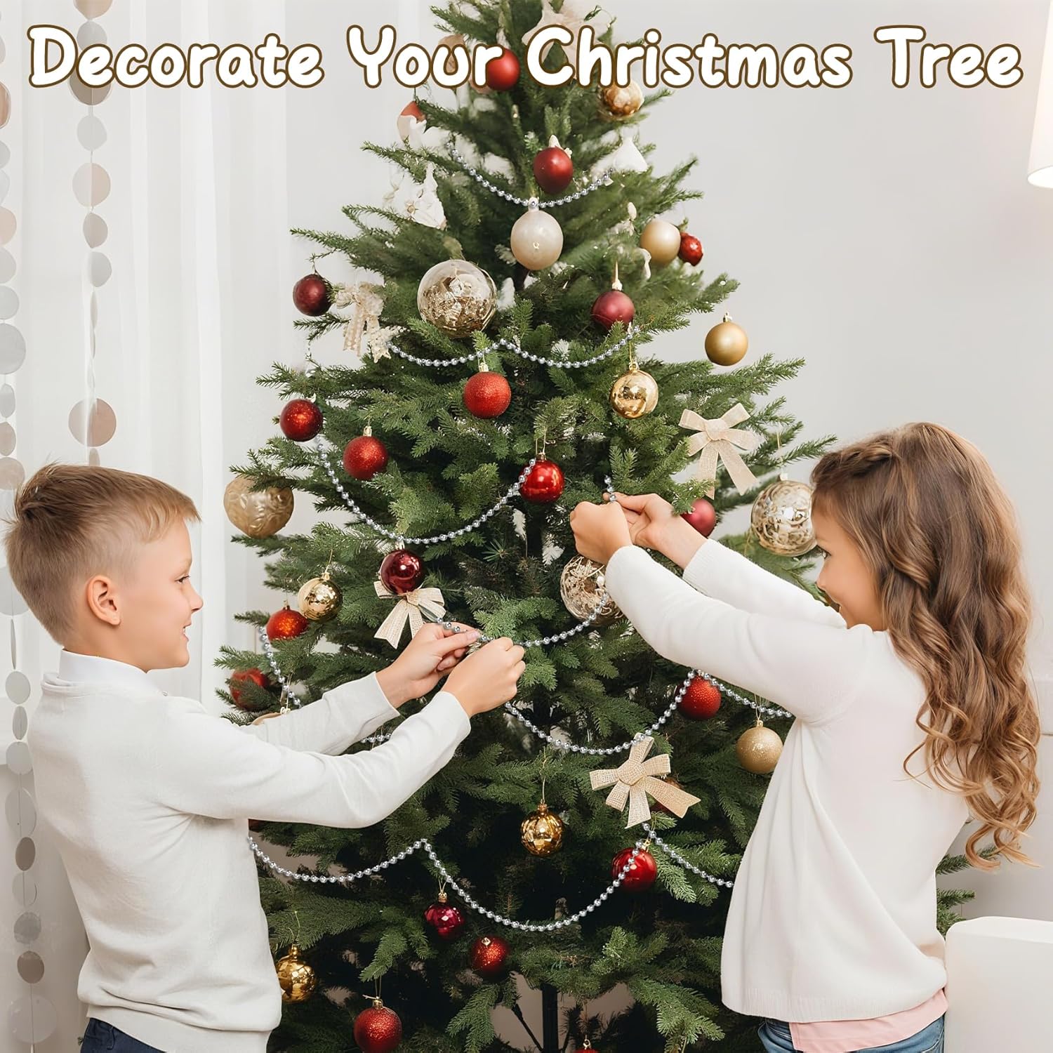 Pearl Beads Garland, 6 MM Silver Faux String of Pearls, Pearl Garland for Christmas Tree 82FT Pearl Beads Strand Spool Bead Roll for Crafts Floral Centerpieces Wedding Party Christmas Tree Decorations