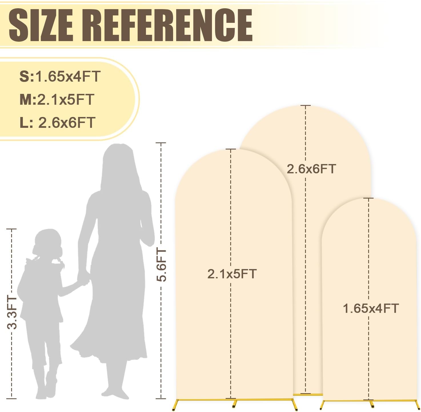 MODFUNS Metal Arch Backdrop Stand and Cover Set 4&5&6ft Beige Wedding Arch Covers Gold Arched Cover Set of 3 Chiara Arches Backdrop Cover for Wedding Ceremony Party Banquet Decoration