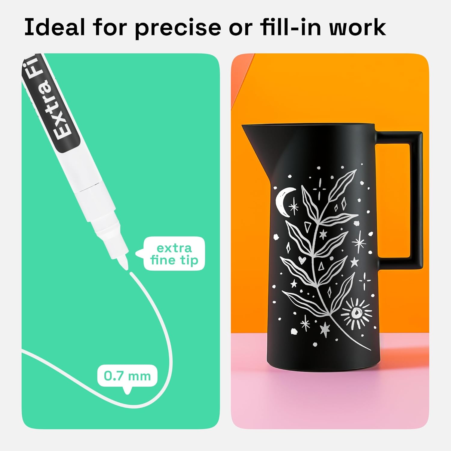 • Extra-Fine Tip: Each oil paint pen is made for fine line work. Detail your DIY project with these oil based pens. Each oil based paint marker will add some shine to your art, no matter the occasion – Christmas, birthday, or wedding decorations!