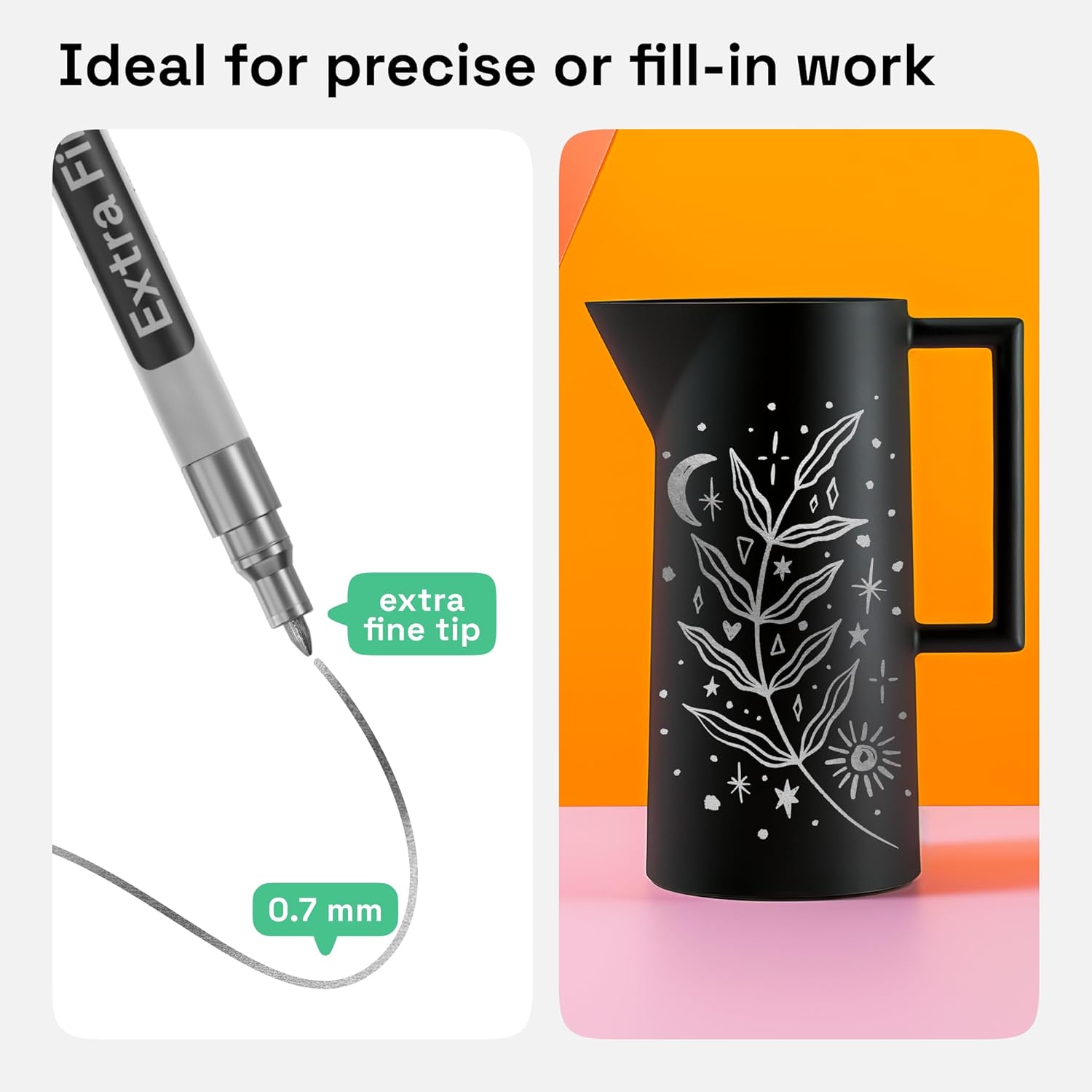 • Extra-Fine Tip: Each oil paint pen is made for fine line work. Detail your DIY project with these oil based pens. Each oil based paint marker will add some shine to your art, no matter the occasion – Christmas, birthday, or wedding decorations!