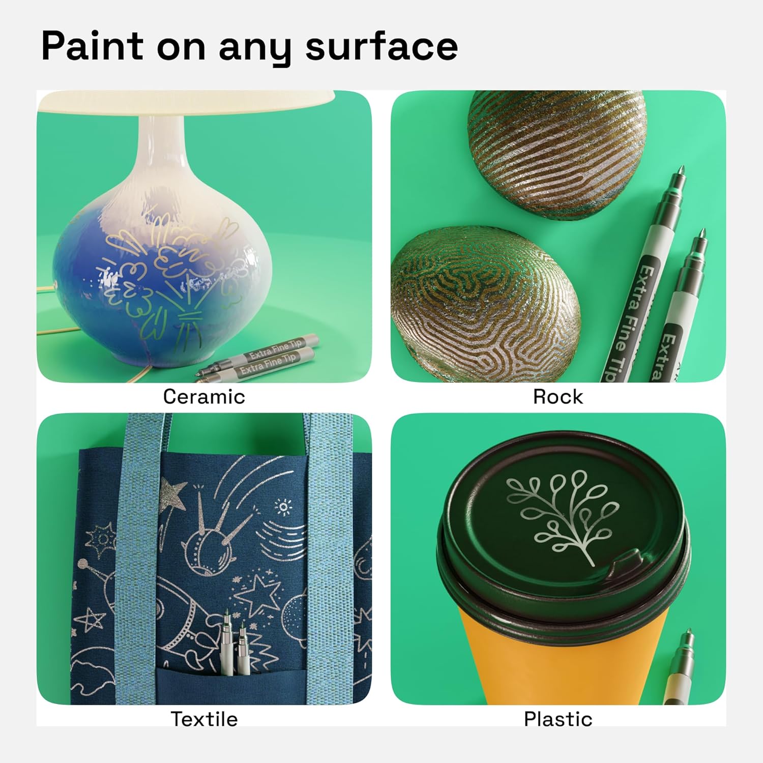 • Multiple Surfaces: Use these oil paint pens as oil markers for plastic and glass or as oil based fabric markers for clothes. Each silver paint pen is water-resistant. They’re also good for leather, vinyl, or epoxy resin. And the nibs are solid, even on rocks!